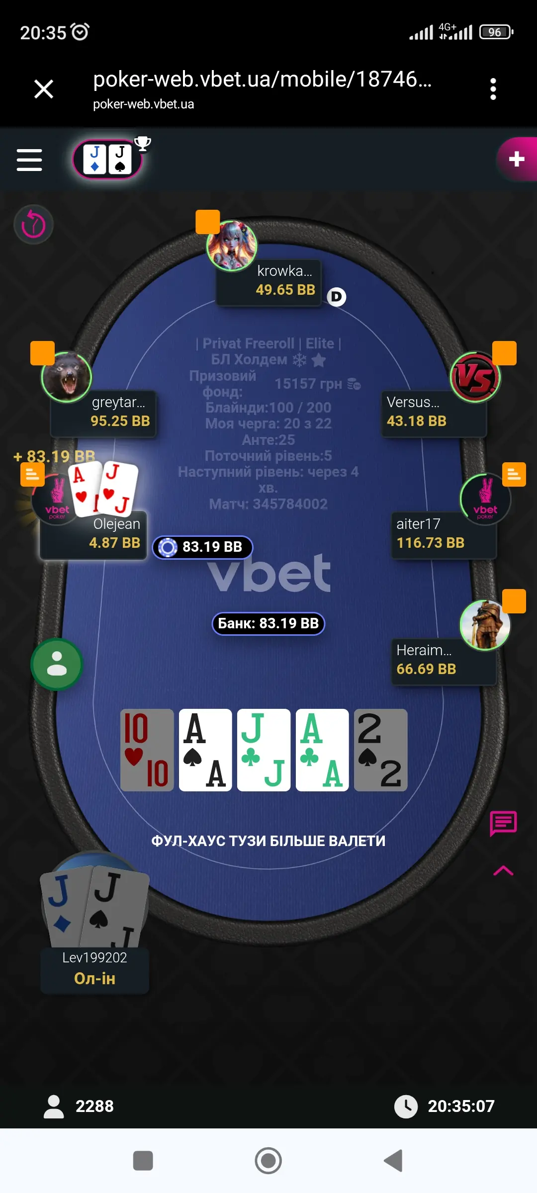 І звичайно фінальна роздача вдалась на Славу для мене а не для :