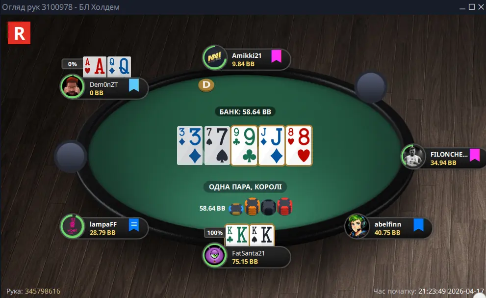 Ну і найболючіша роздача. Виставлення префлоп і дуже поганий рівер, який збив мене з колії.