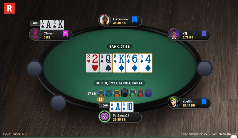 У мене було під 20 блайндів, зайшли валети, відкрився і отримав пуш від короткого стеку.