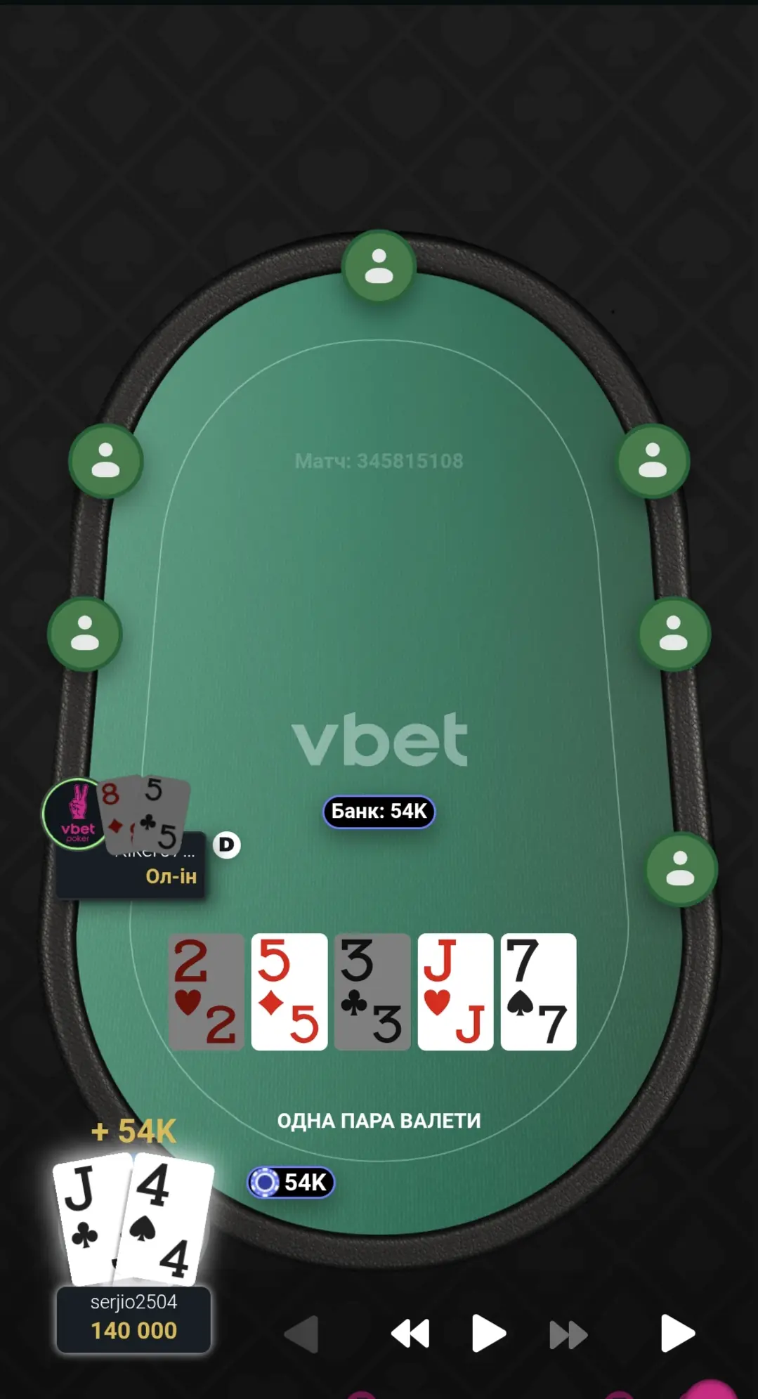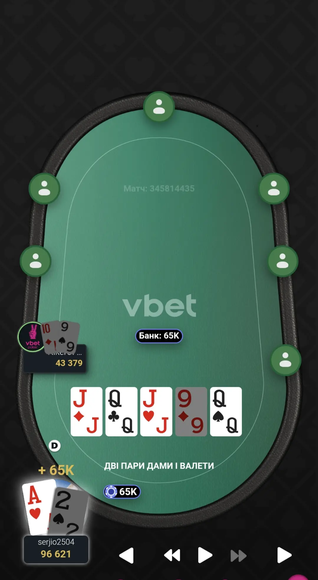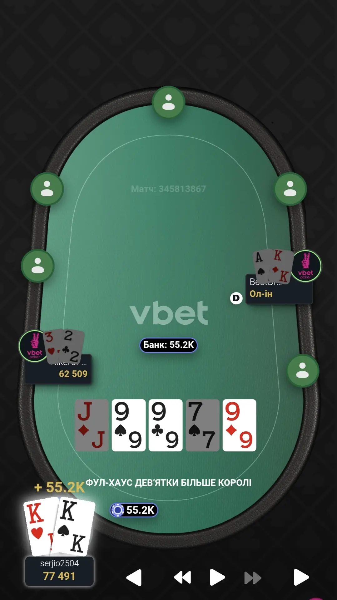 Відновив стек до стартового, а пізніше й майже подвоїв. Гра була важка і напружена.