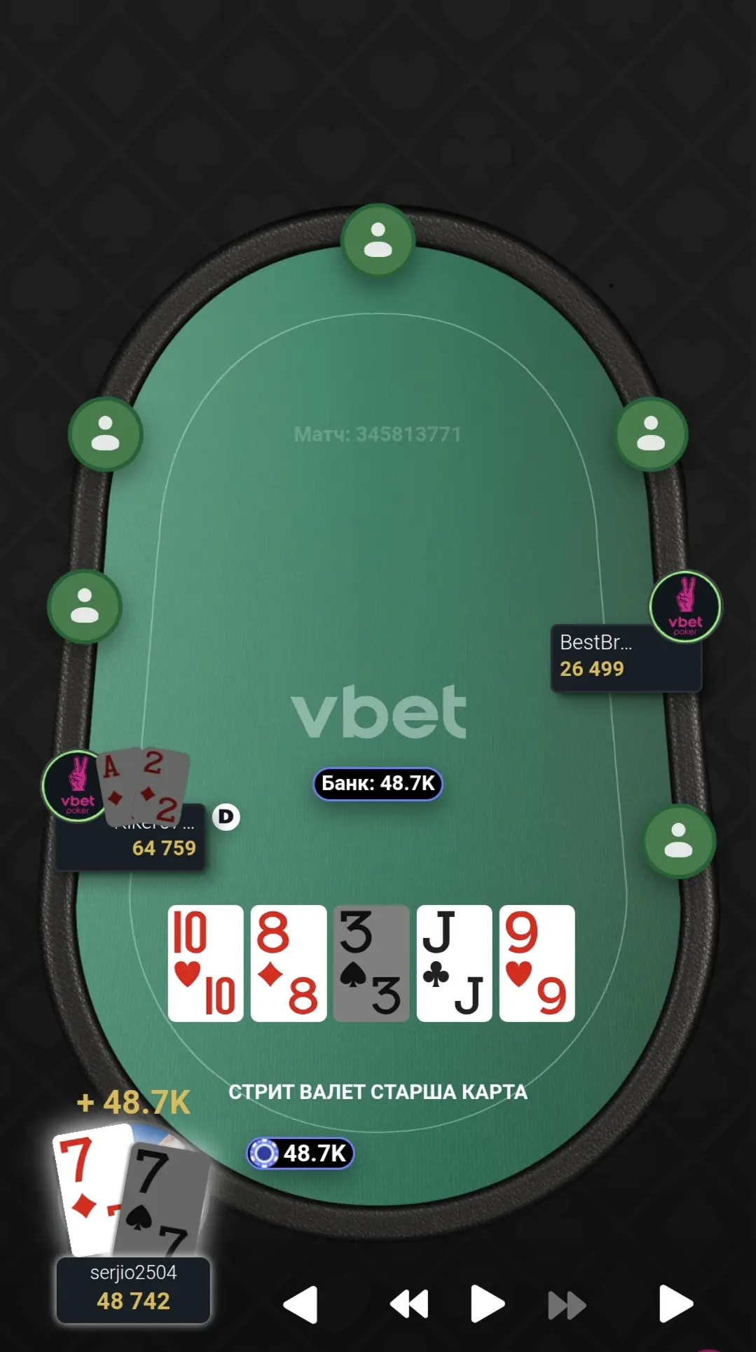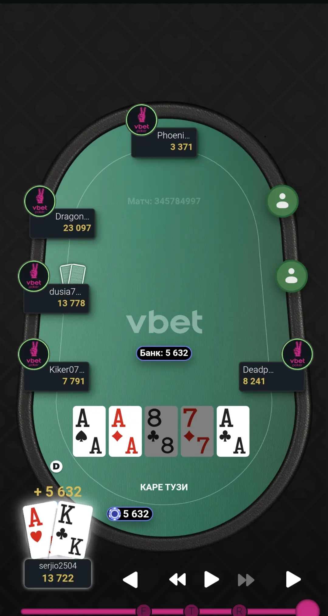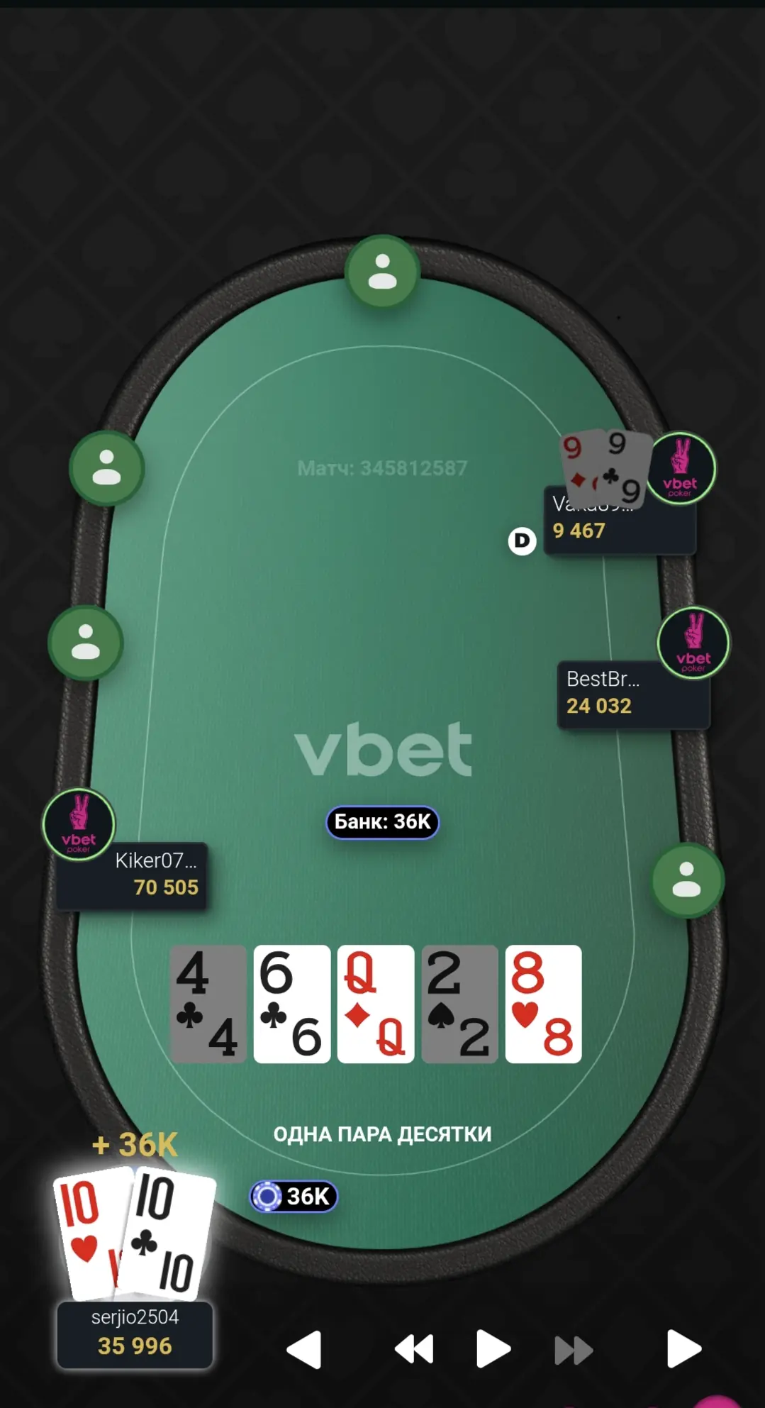 Відновив стек до стартового, а пізніше й майже подвоїв. Гра була важка і напружена.