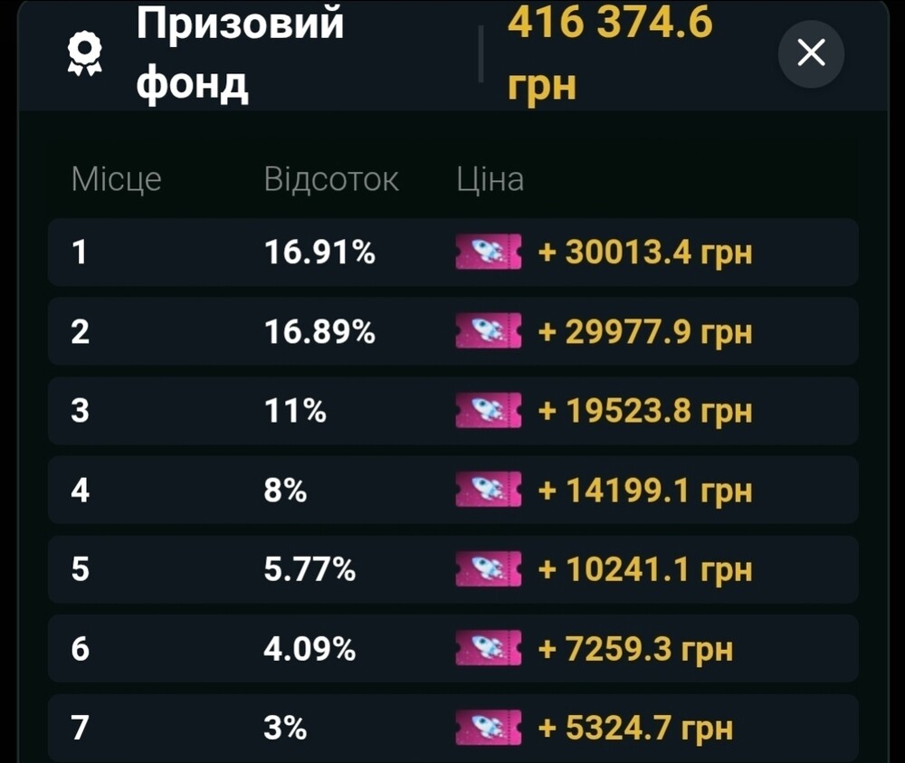 Це надало мені максимального прискорення та бусту 💥💥💥 і я з пристойним стеком одним оком почав задивлятись на найсмачніші призові (позиція 4/14)😎