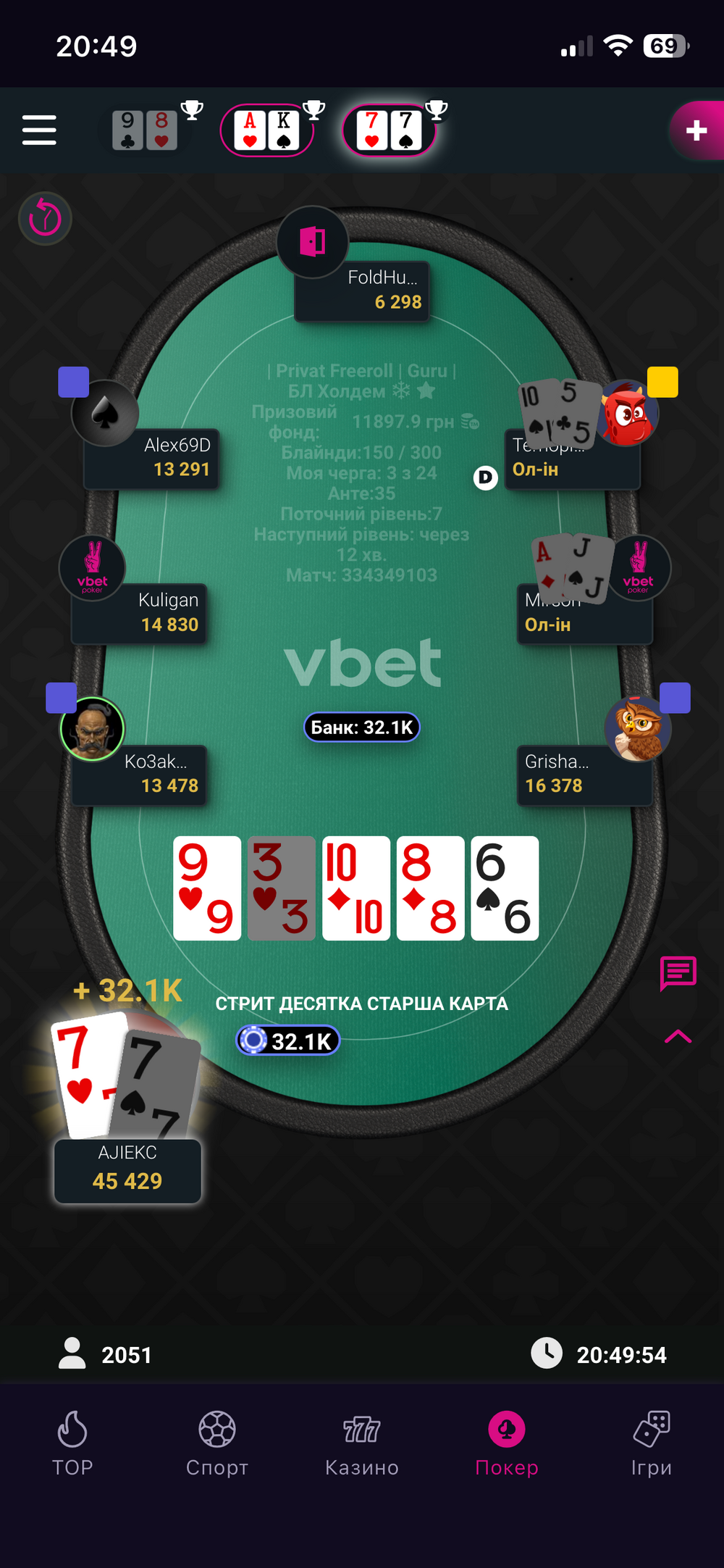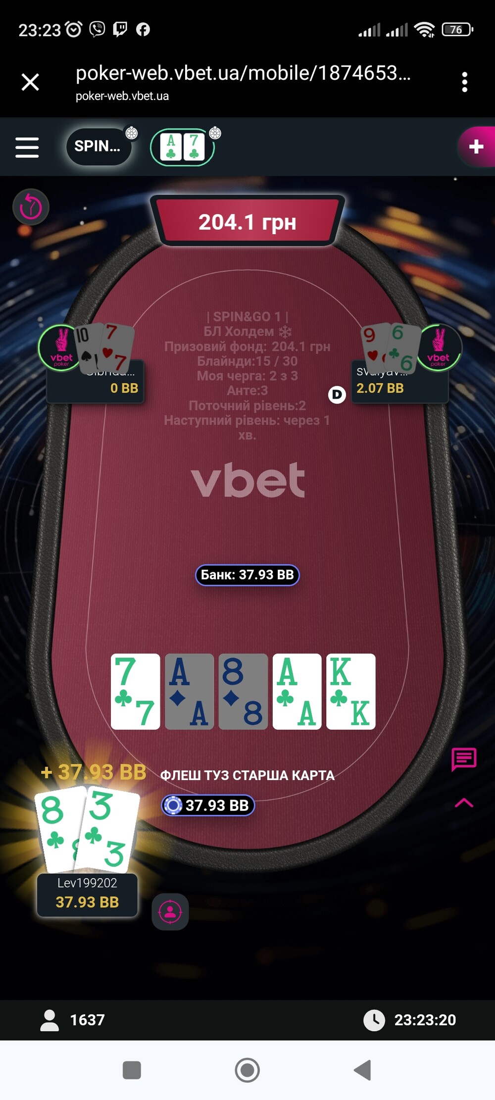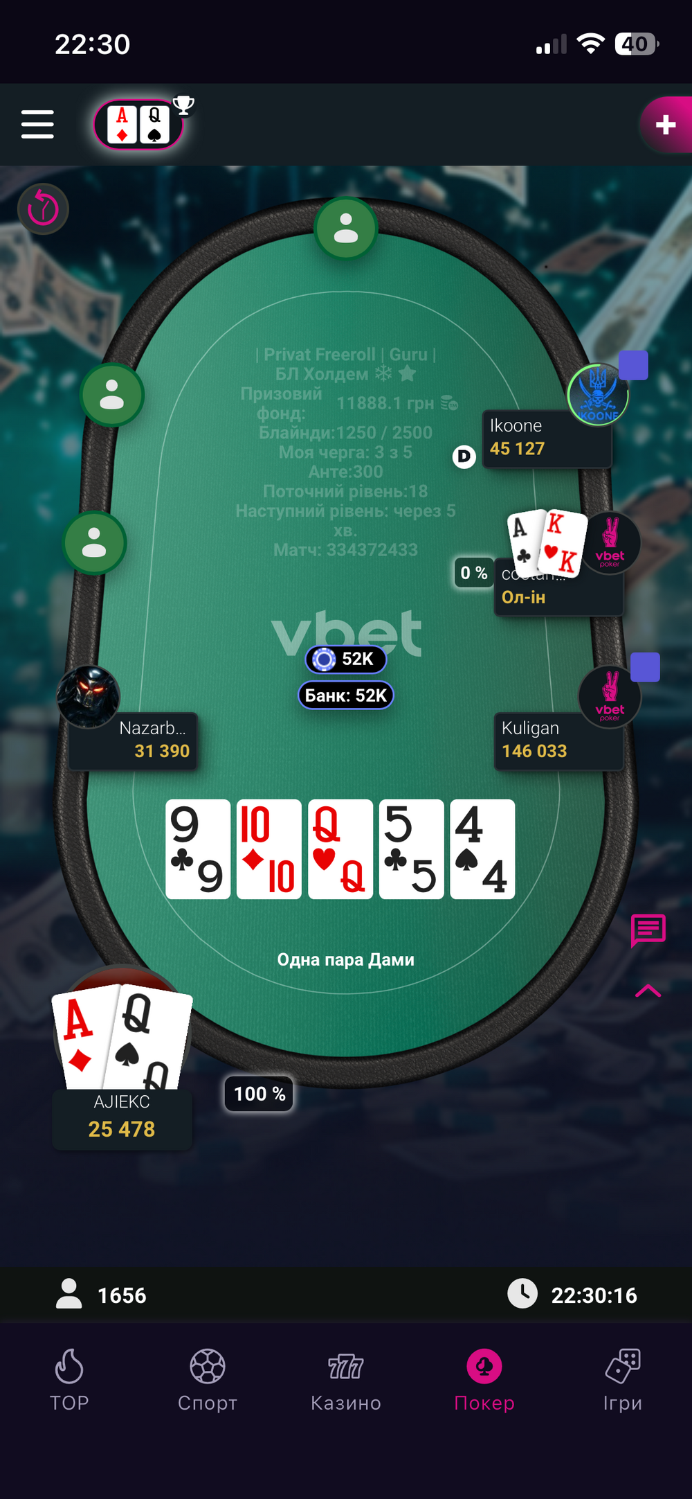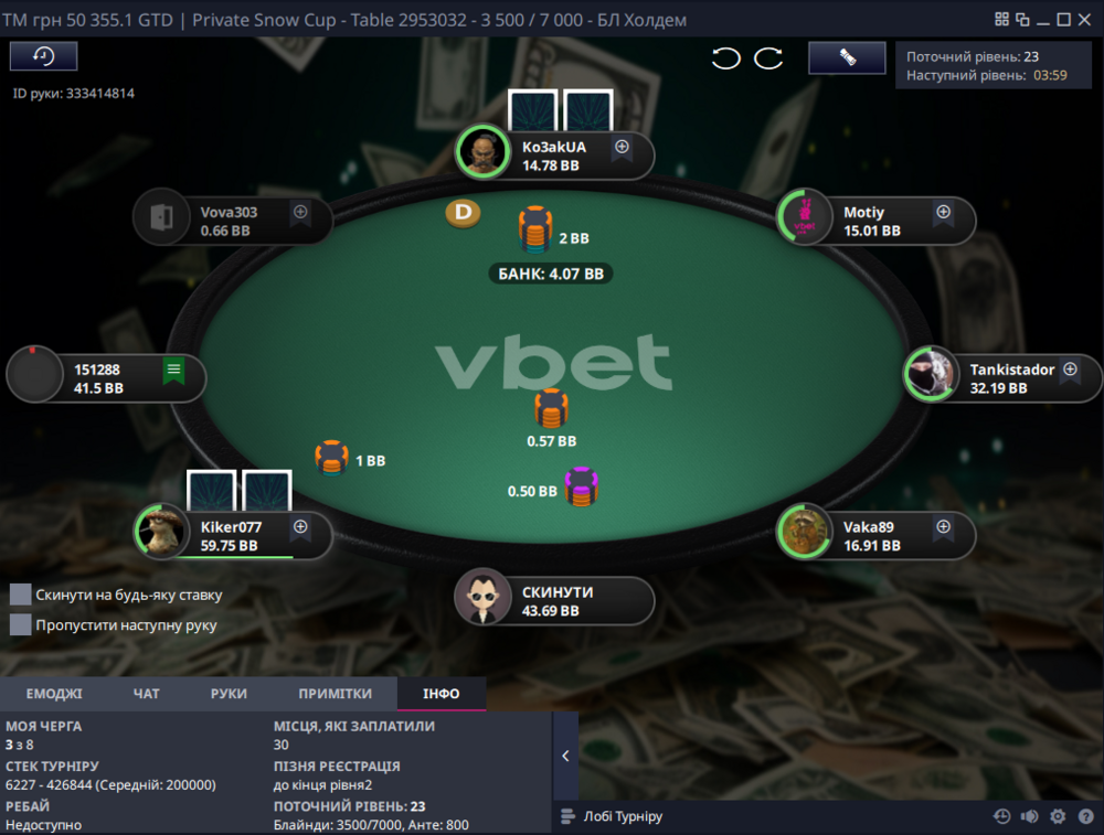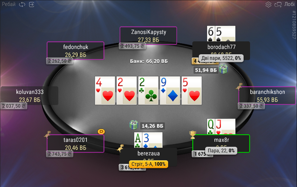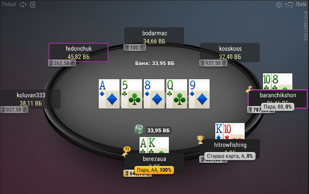 Одразу ж після цієї невдачі я запушив А3 і потроїв свій стек, а один з опонентів вилетів, подарувавши мені пейджамп +1252,80₴: