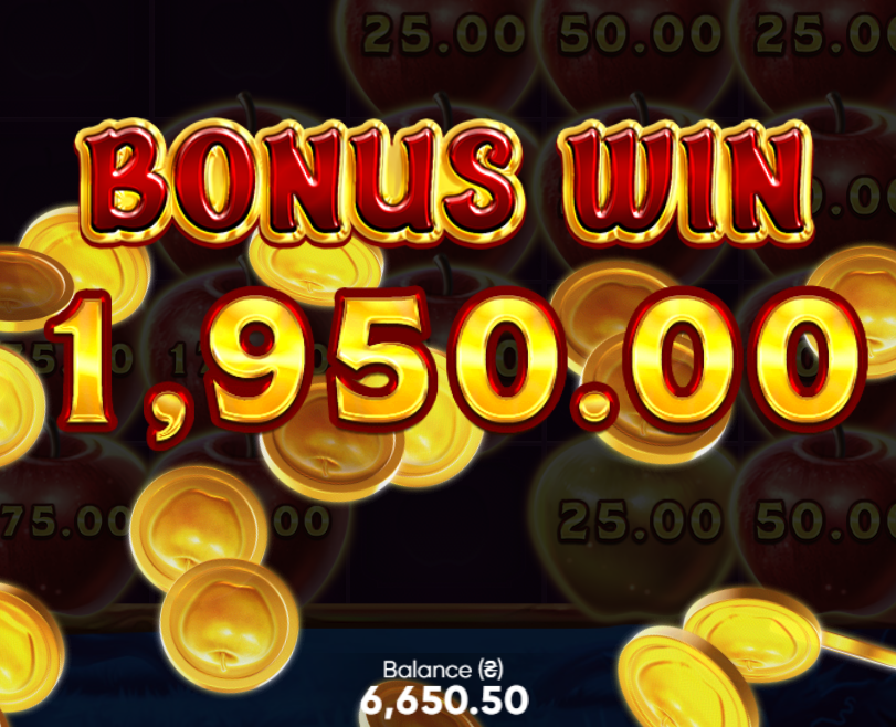 Ого, подумав я, невже відіграю?! Вирішив лишитися і цьому слоті (єдине, що перевірив чи буде зараховуватися і ставку підняв до 50) і не прогадав. Бонуски падали добряче, двічі навіть зібрав 19/20 яблучок: