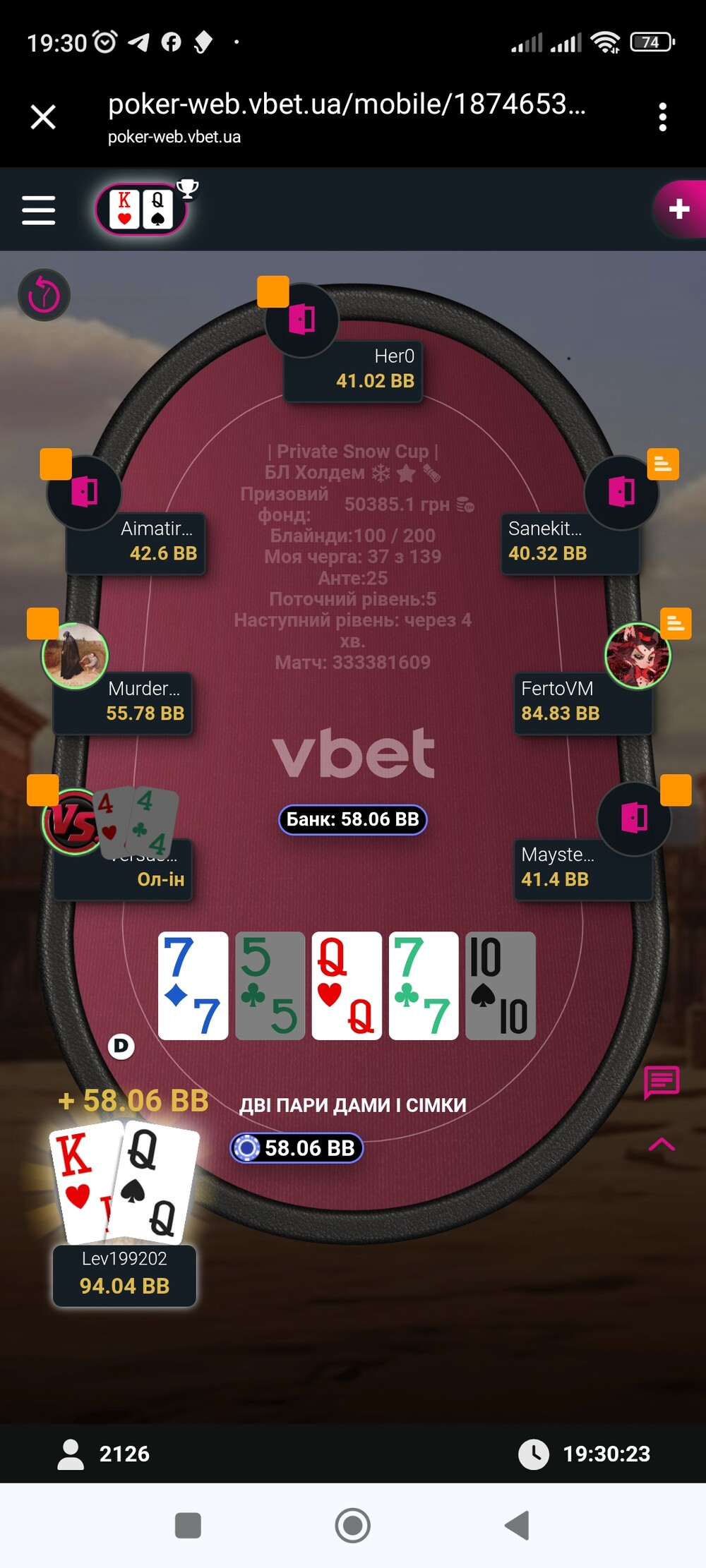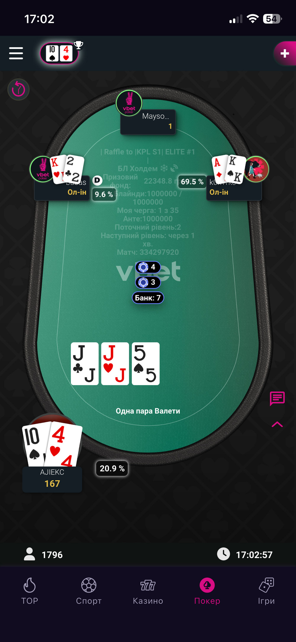 До речі, я переміг у КОЖНОМУ😱 фліпі того вечора. Але, але… Чомусь, як би мене не переапувало на початку і в середині турніру, на фініші фортуна покидає мене. Так було і цього вечора. Просте виставлення, доміную руку опонента, але... Ні, не цього разу.
