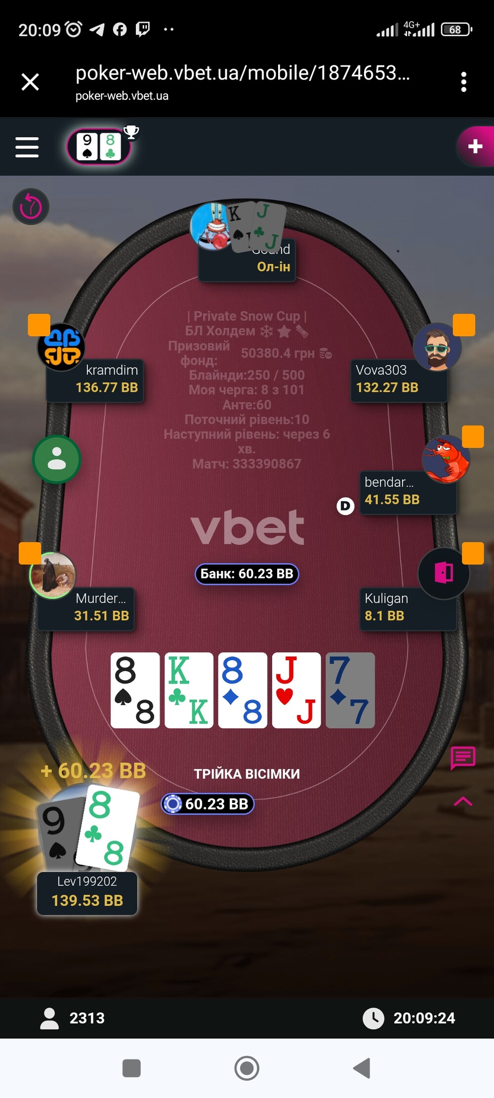 Після виграшу в цих роздачах, я з 13-го місця застрибнув аж на 2-ге, попутно заробивши непогані гроші за вибивання hitrowfishing (+1318,75₴) і kosskoss (+968,75₴)😎