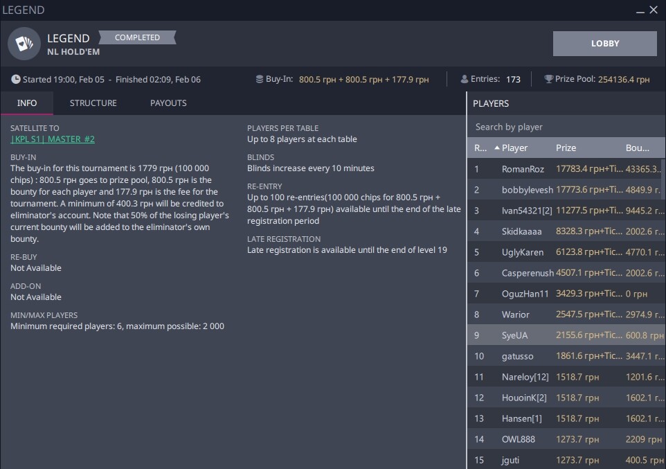 Паралельно з цими двома турнірами грав ХОМКУ ГУРУ. Тривалий час був ТОП 1 і навідь зіграв за фінальним столом.