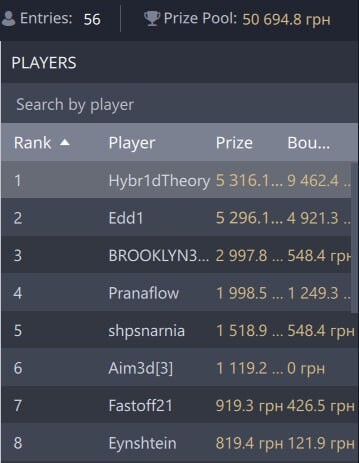 Призи: кубок (виготовимо) та 50$.