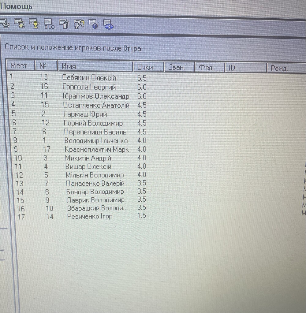 В змаганнях приймали участь 17 учасників, грали швейцарку 8 турів. Набрав я 6,5 очок (5 перемог і 3 нічії).