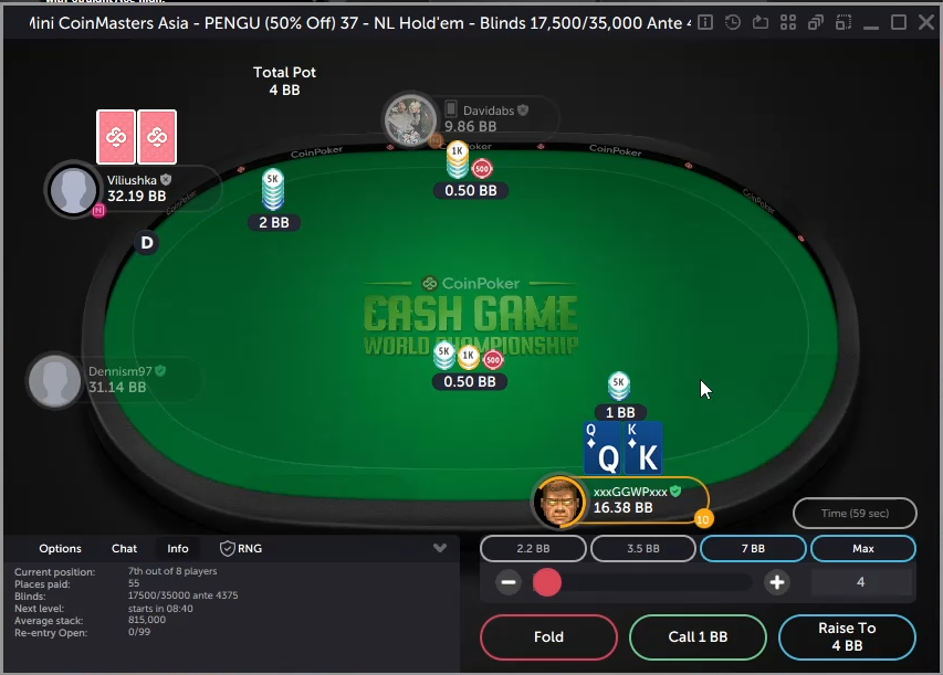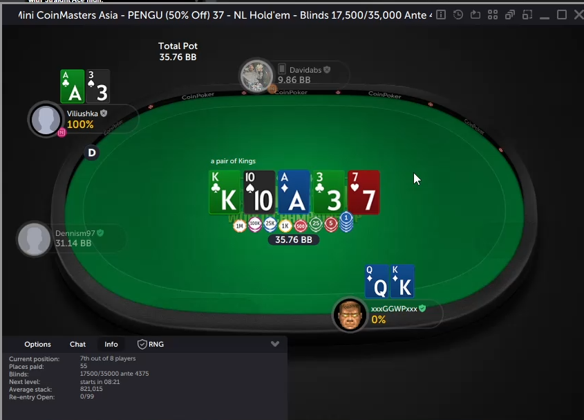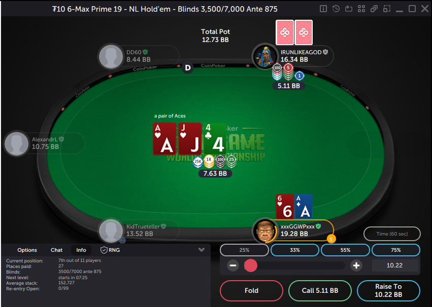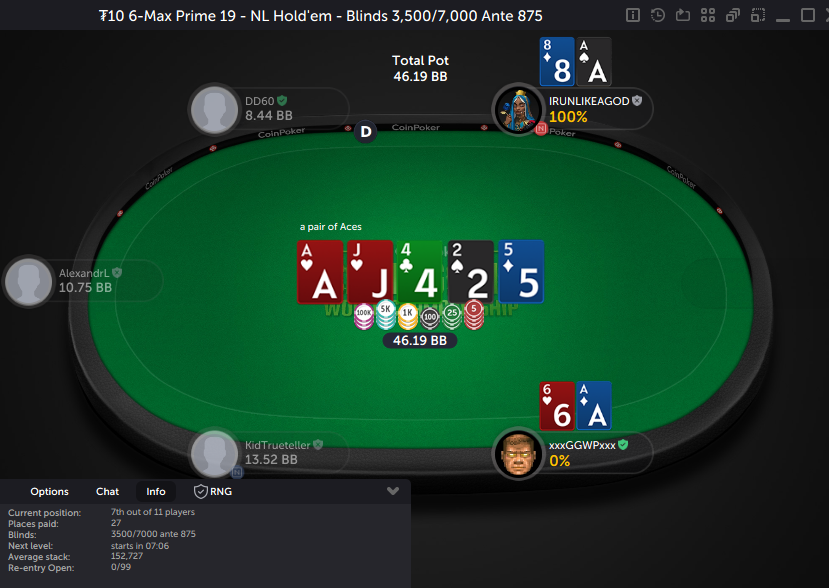 на фіналці все йшло добре, поки я не програла майже весь стек з А7 зібрав допер дві пари, куліган зібрав стріт і ледь мене не вибив четвертою