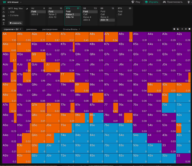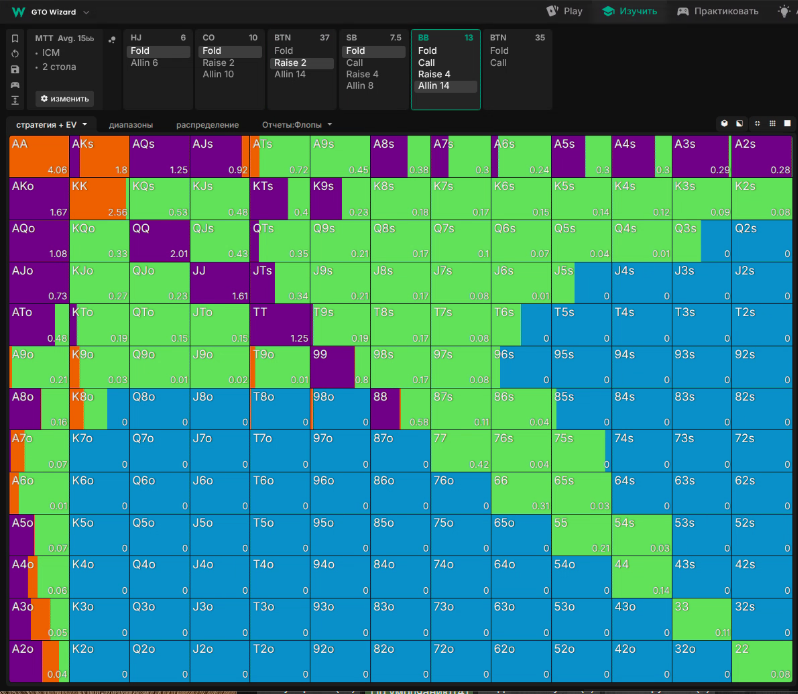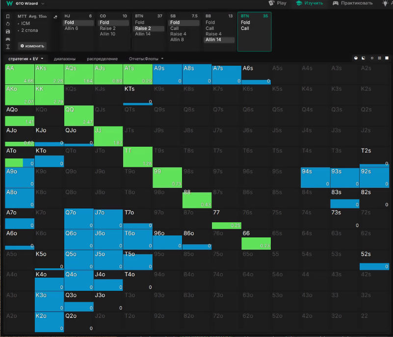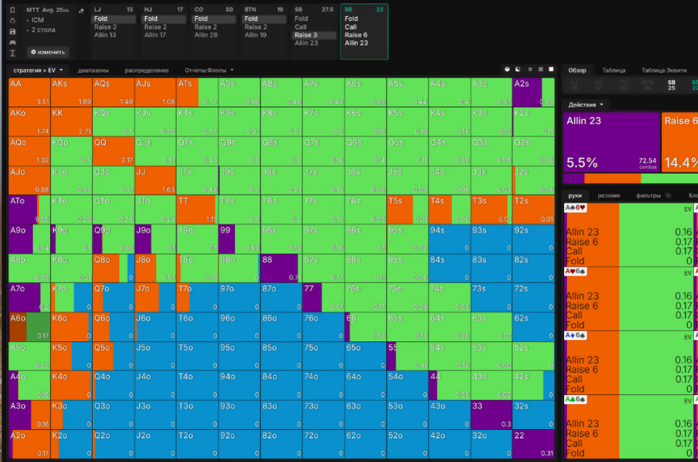 Тут сайз рейзу опонента 3 (замість 3.5бб), і бачимо що він хоче колити, а й інколи грати рейз.