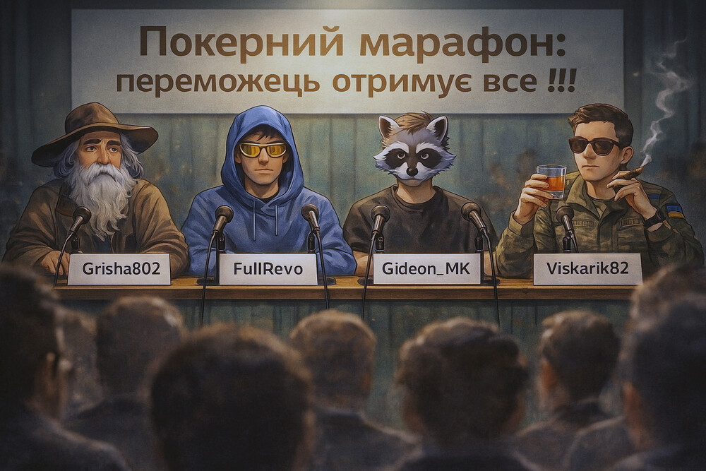 Вітання усім, хто прийшов на пресконференцію з приводу старту покерного марафону "Переможець отримує все" (кубок, гроші, славу, любов жінок та заздрість опонентів).