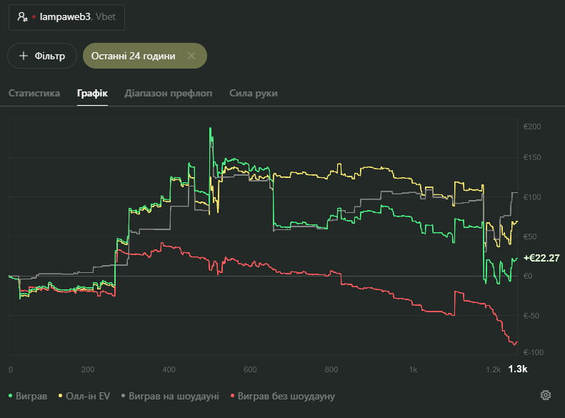 Зараз триває чергова серія невдач, яка поширюється й на інші турніри, тому їх практично не граю, віддаючи перевагу Spin&Go на VBET POKER та кеш-місіям. Очікую її кінця 🙏