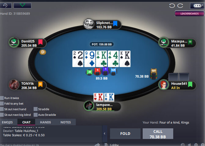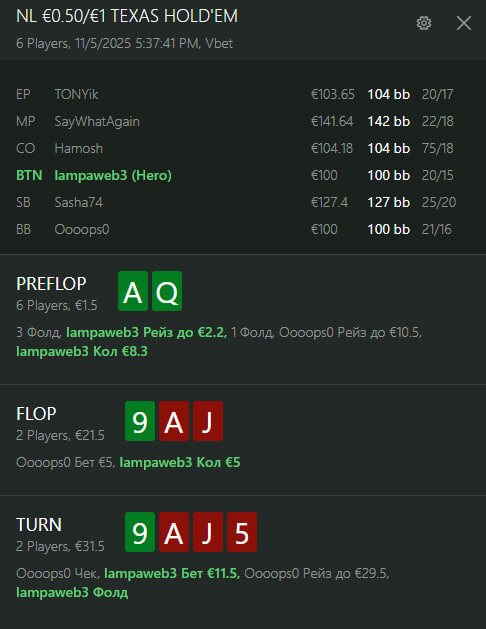 Ми вже в призовій зоні.Гравець"Кукундер пушить з ранньої позиції вирішую прийняти .Подвоївся і добре.