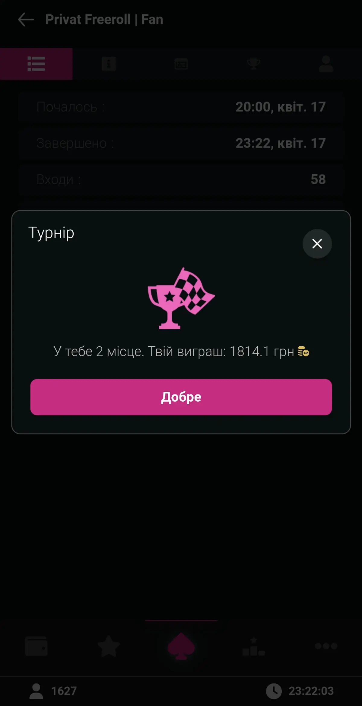 Вітаю з статусом тепер головне не забувати про даний турнір 🙂