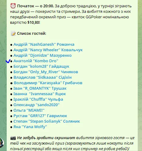 🎯 турніри зі стрімерами по четвергах за 3 бакса