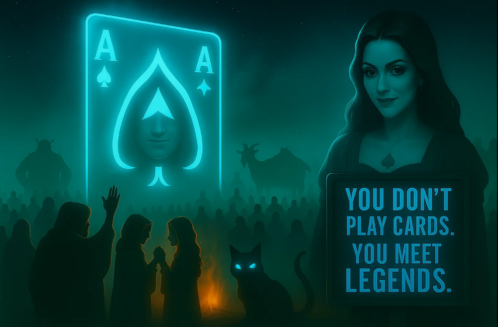 Уночі всі говорили, що бачили тінь чорного кота на горизонті. Хтось казав, що то був сам Serjio25🐈️, інші - що це духи карт. Я бачив голограму величезної пікової дами Victorias👸, яка підморгнула і зникла між натовпом. Деякі люди стояли мовчки - ніби зустріли самого Begu_Idu🚼️.