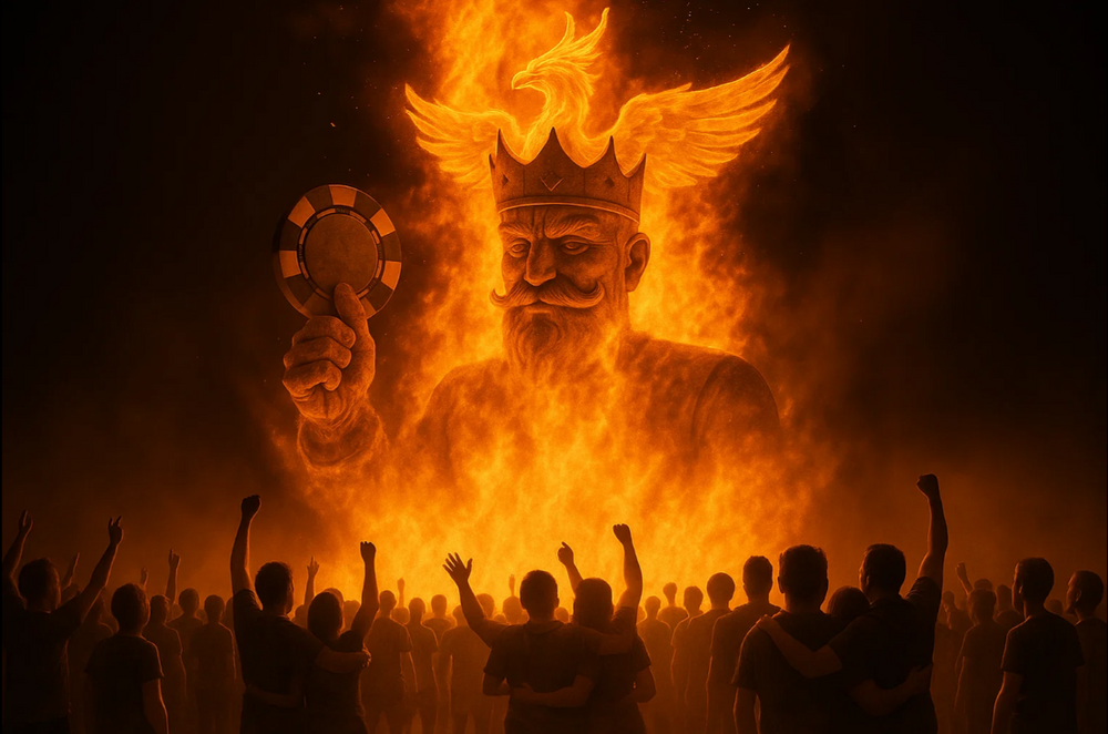 На останній день всі зібралися біля гігантської інсталяції - короля, який тримав фішку. Його підпалили і вогонь вирвався в небо, немов величезний "all-in" проти самої долі у формі птиці Фенікса. Ми кричали, сміялися, обіймалися один з одним. Я відчув, що цього разу карти здала не доля і не дилер - ми самі...