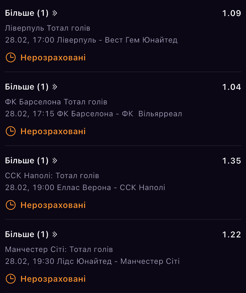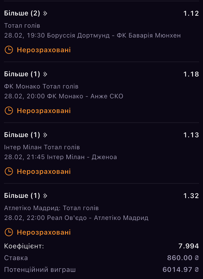 Зазвичай я ставлю фрібети на ординари, але сьогодні вирішив спробувати на експрес із 12-ти сьогоднішніх футбольних матчів - обирав тотали з невеличкими коефіцієнтами, але досить високою прохідністю😉