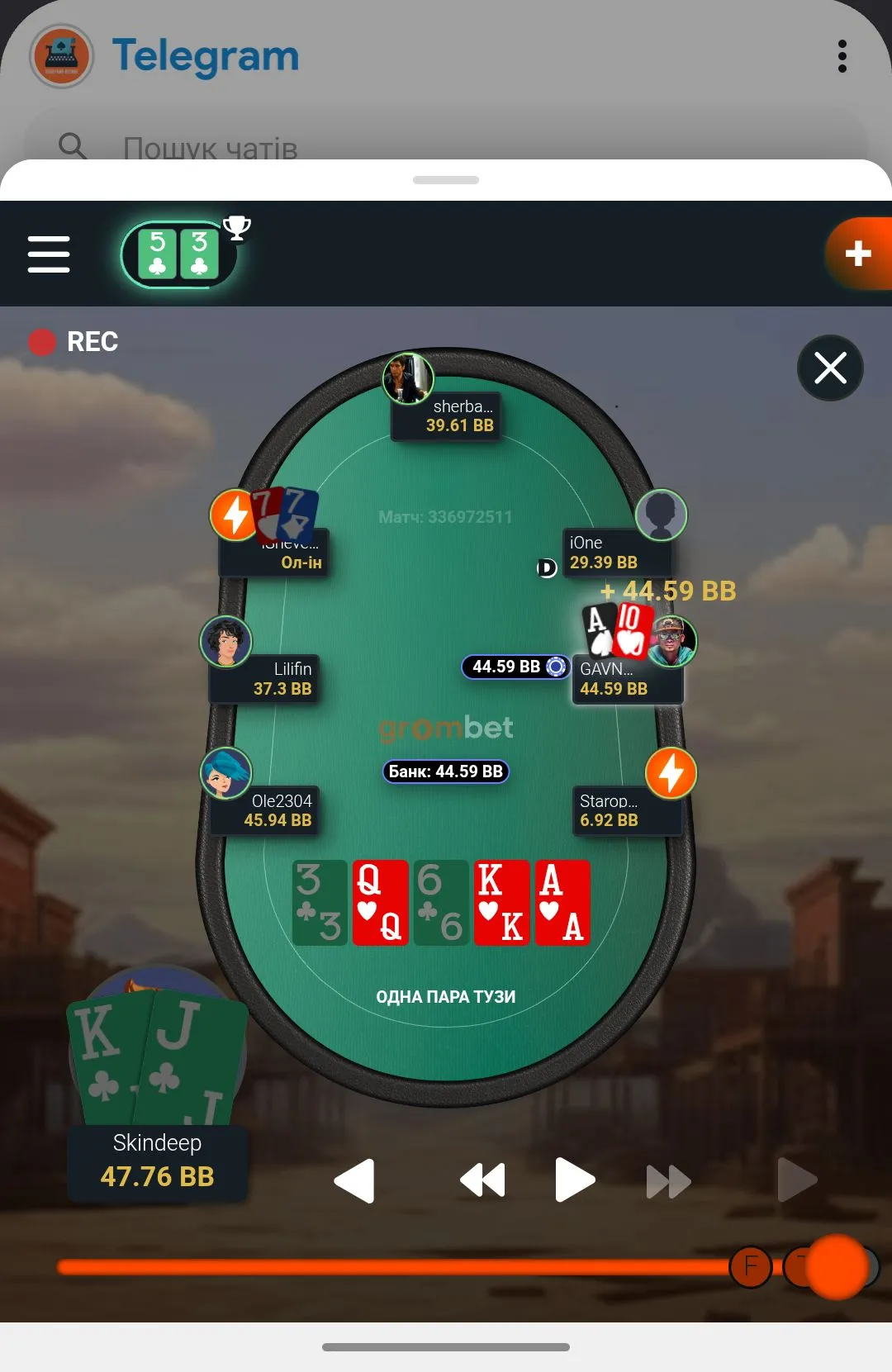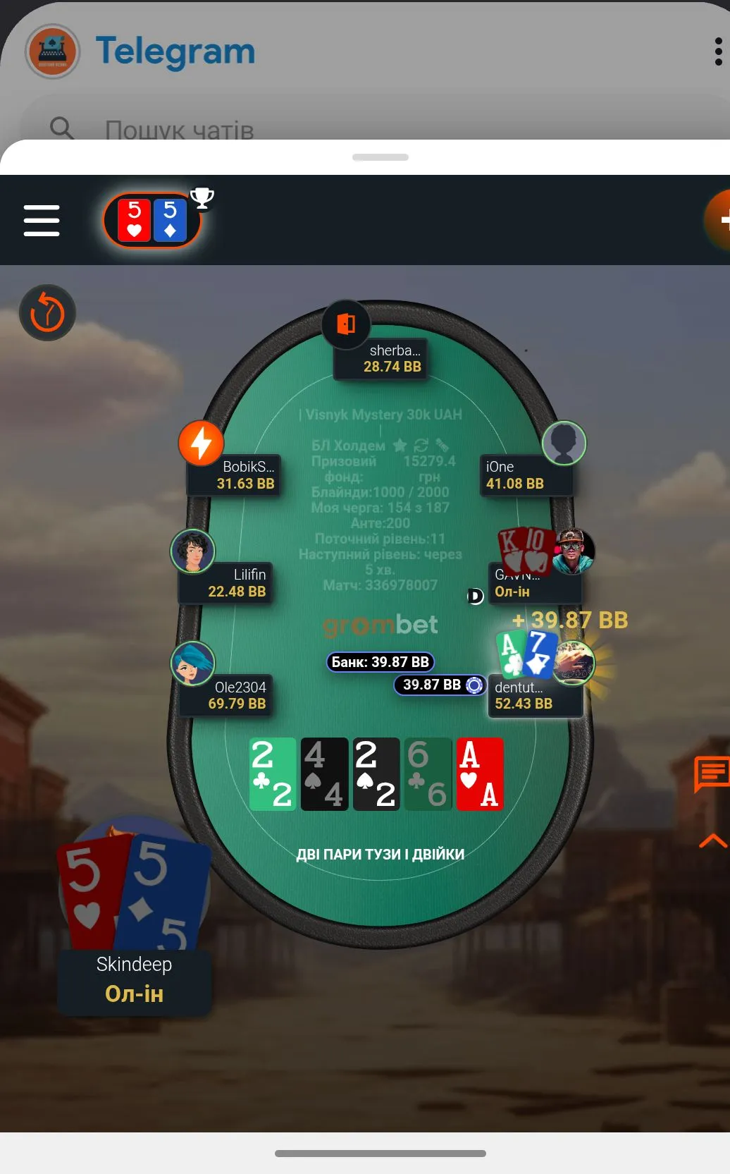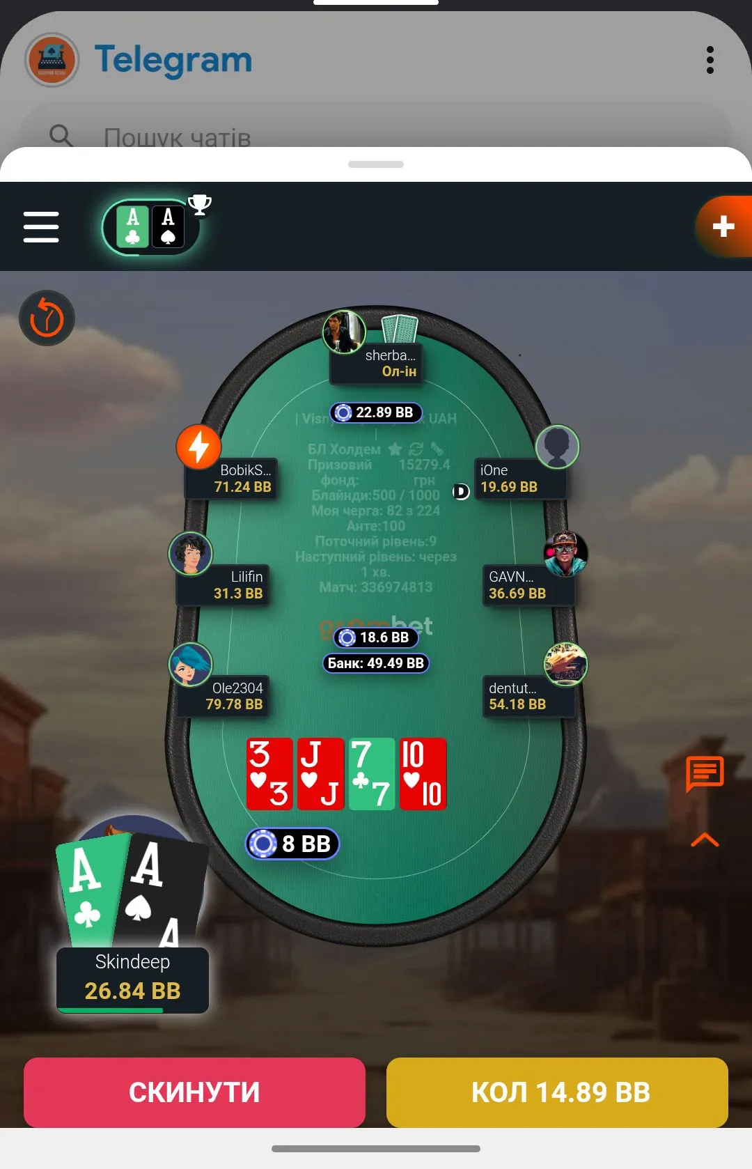 А далі дуже неприємно. Гравець , який періодично то в сіт ауті, то заходить в гру ол іном, пішов ва-банк, а я відколив.