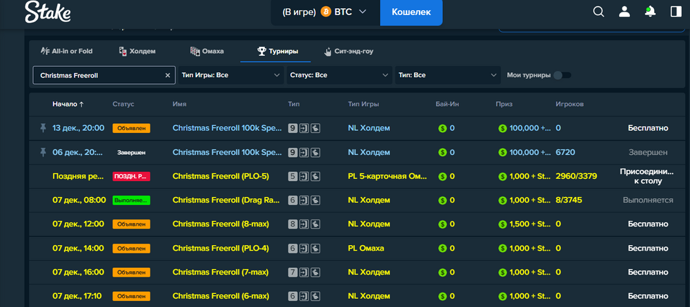 Турнірів на платформі дуже багато,самий головний і смачний це фріха на 100к$. Звісно на неї потрапити важко, адже бажаючих багато, а місць лише 7000. Мені пощастило, я встигла в останній момент.