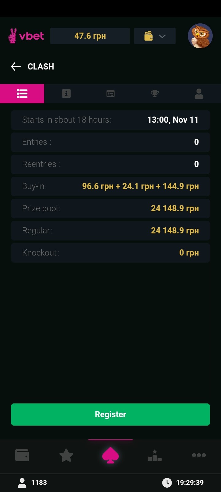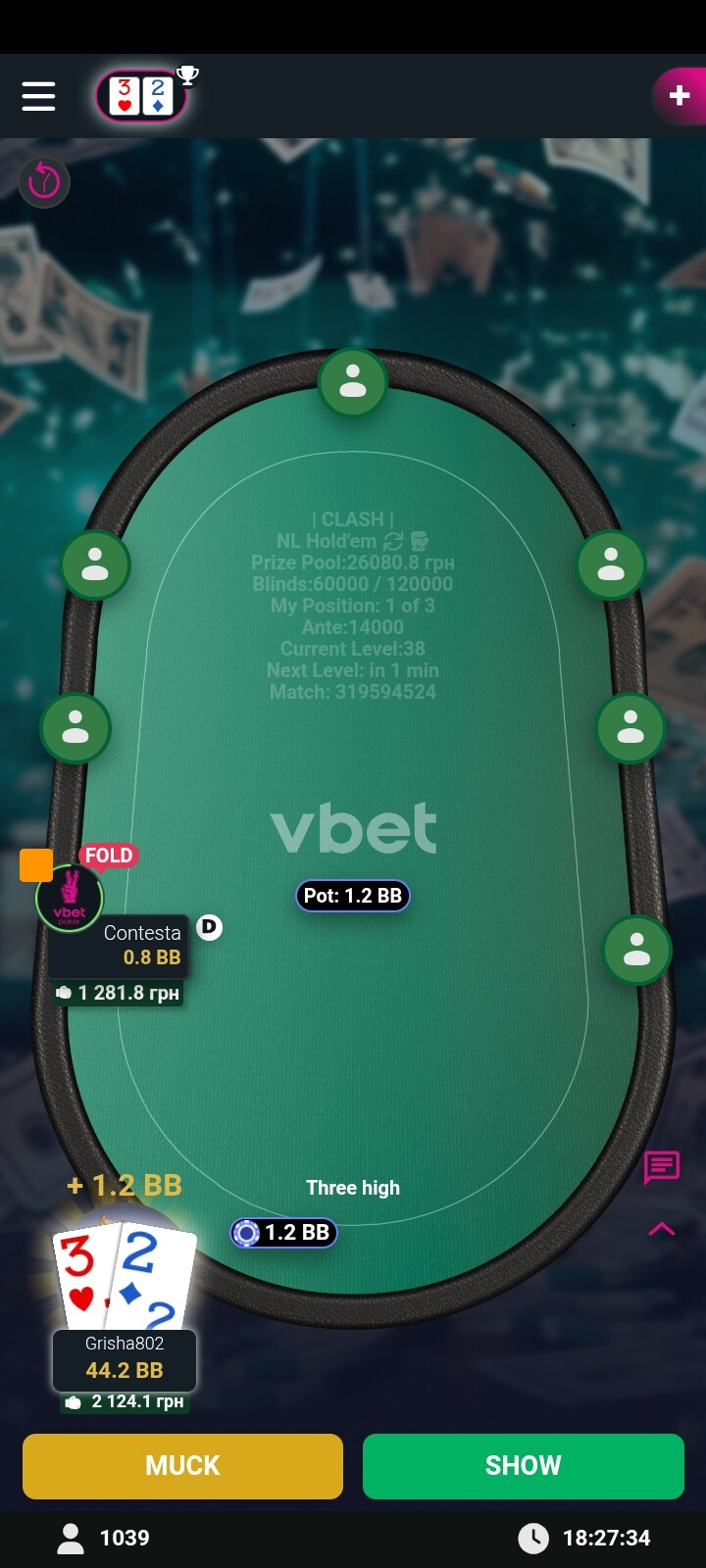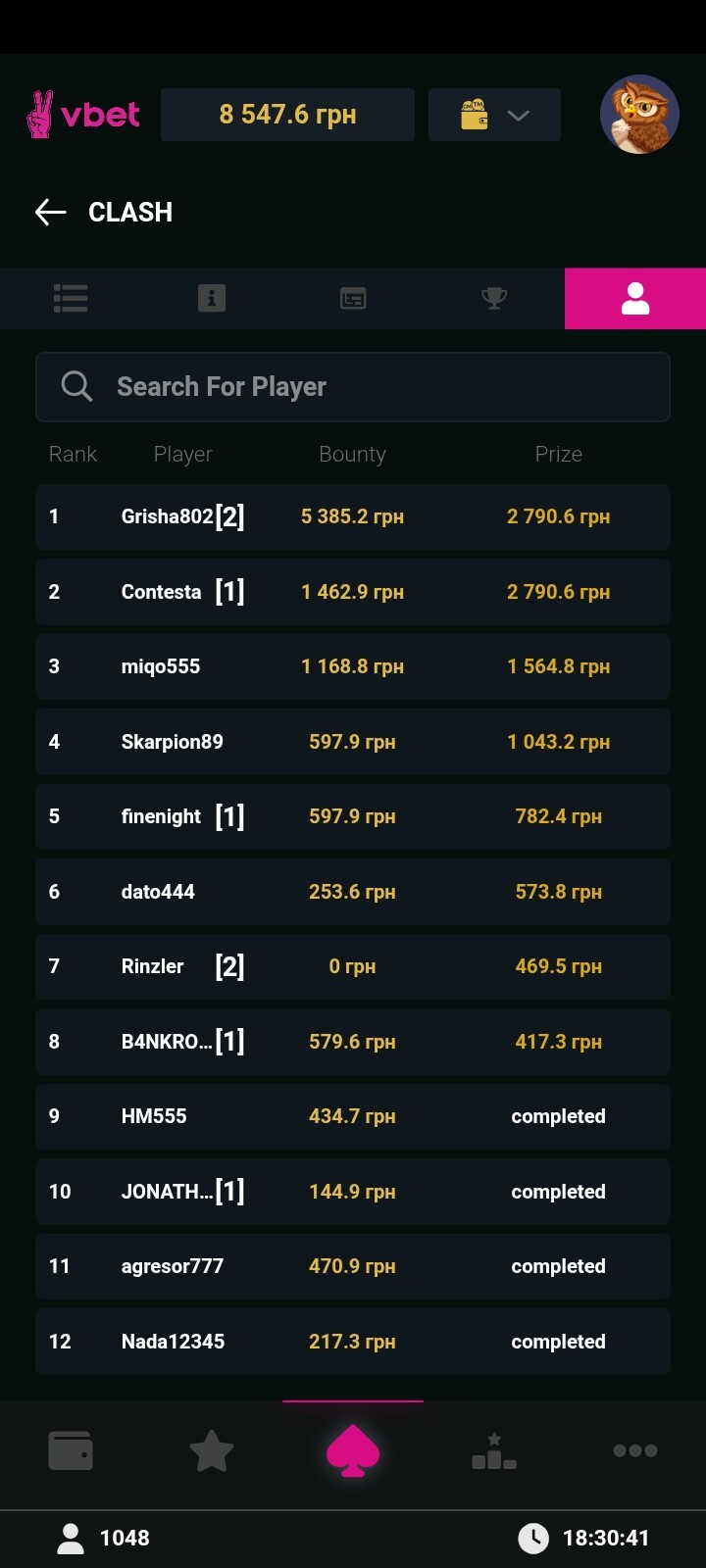 Не пам'ятаю суми виграшу але Ти вибив всих за столом ,Я цього не зробив.