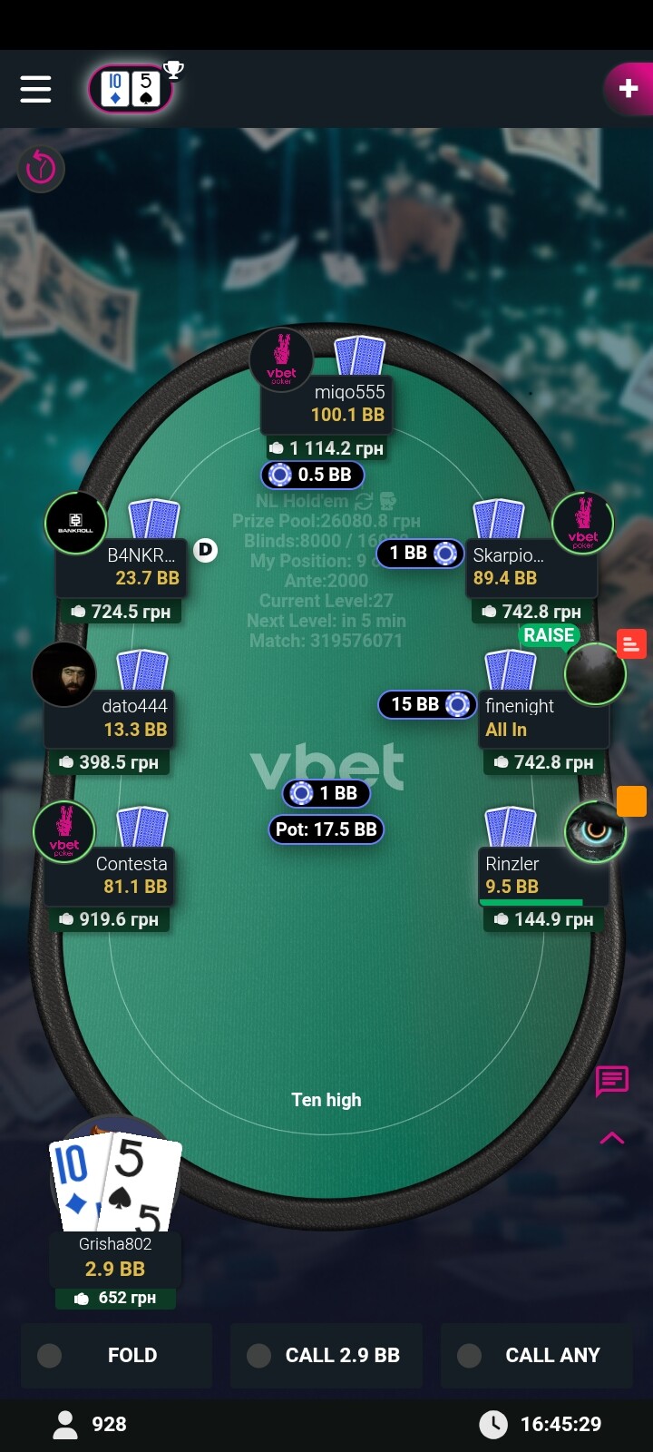 Якщо не прогорнете далі як думаєте яке місце посяде в турнірі Grisha802??проти гравців в яких 100 бб;90бб;80бб.!!!