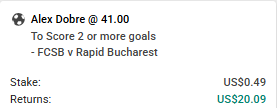 👉️ Anytime Goalscorer - Alex Dobre 📊 кф. 5.50 (PokerStars) 🔹 $3