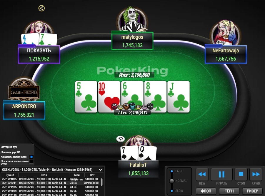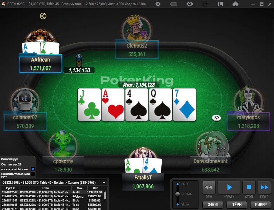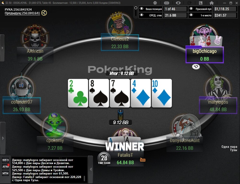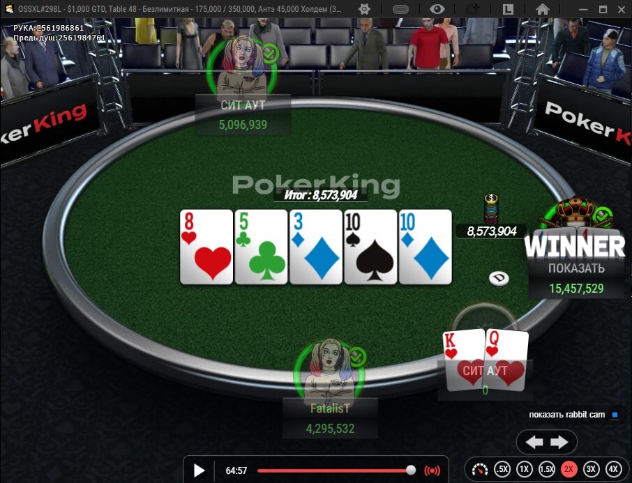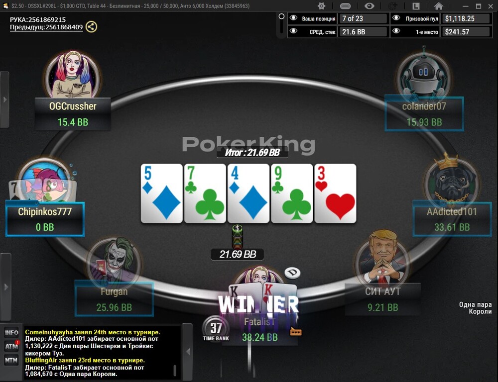 Найсильніший гравець з тих хто залишився - чіплідер TJsuited, OGCrussher - активний фартовий любитель, а AAROAA - щось середнє між любителем та регуляром.