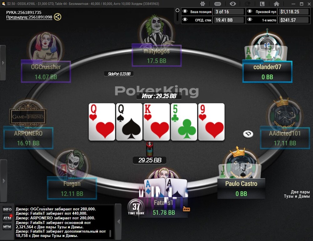 Тому на фіналку я вийшов вже не чіплідером, а з 7-8 стеком та значно меншими амбіціями. Перейшовши на "понижену передачу" я зміг пересидіти кількох гравців, отримати додаткові виплати та дочекатись свого шансу...