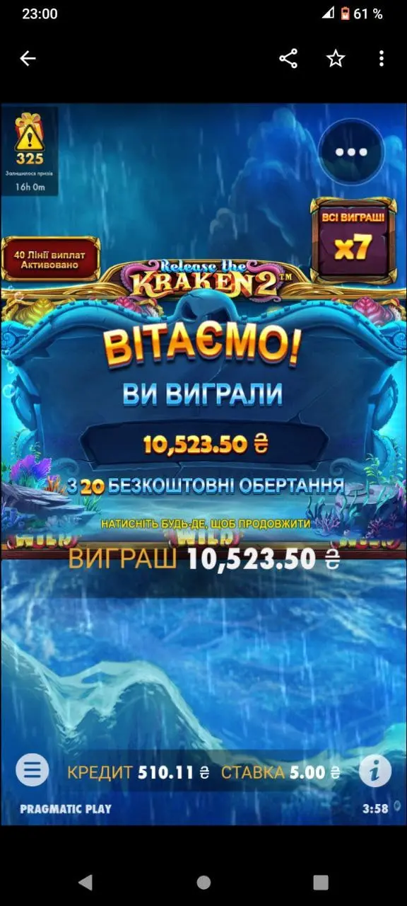 Натискав навмання один слот другий третій четвертий і тиша мінусує , і ось залишається десь біля 400 зайшов у цей з качкою думаю як раз крайній він буде на 100грн , дійшов до 300 думаю зараз ось ось вибухне кулька треба дотискати😁 але вибухнув MAJOR 58K🫨