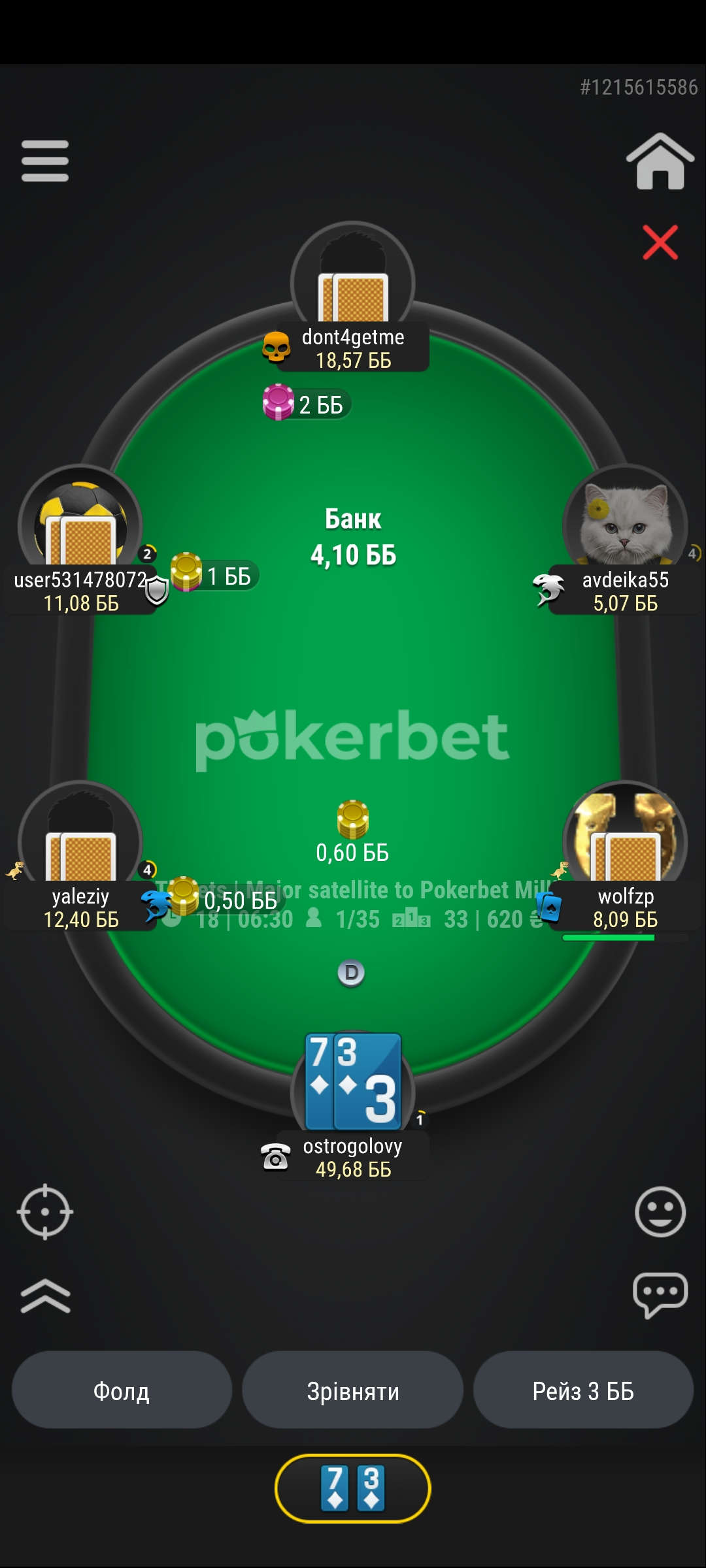 Дочекався, бляха, тузів 😂 Префлоп 7 бб, опонент олл-ін, я кол, і ось результат, ех
