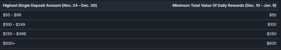 перша акція це щось накшталт адвент календаря з подарунками, за депозит який зробите з 24 листопада до 30 грудня вам кожного дня будуть давати подарунки