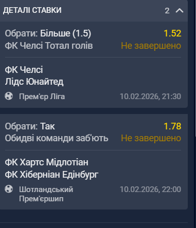 Дві ставки на сьогодні Челсі-Лідс і Хавтс-Хіберніан