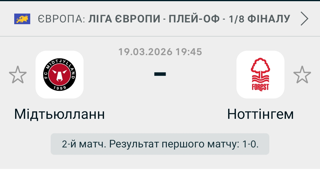 ⚽️ Мідтьюлланн - Ноттінгем Форест