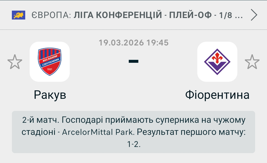 Фіорентина любить контролювати гру, але Ракув вдома дуже впертий. Часто такі матчі відкриваються несподівано швидко.