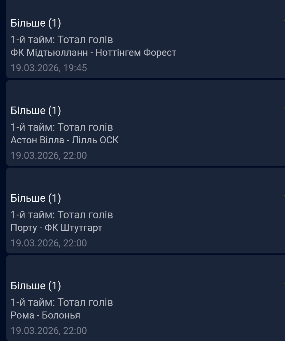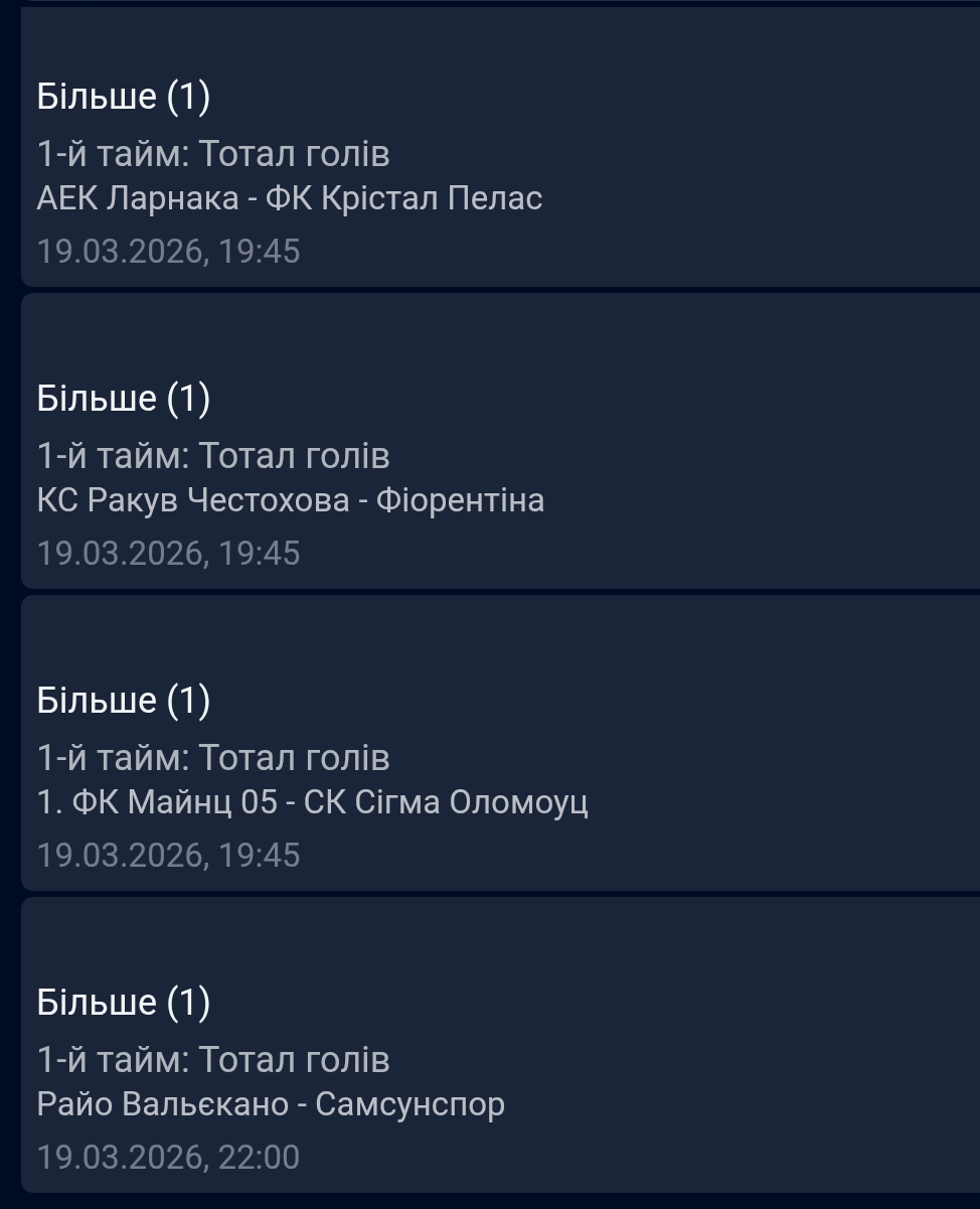 Сьогодні мають бути самі результативні перші тайми⚽⚽⚽ Успіхів, друже🍀🍀🍀