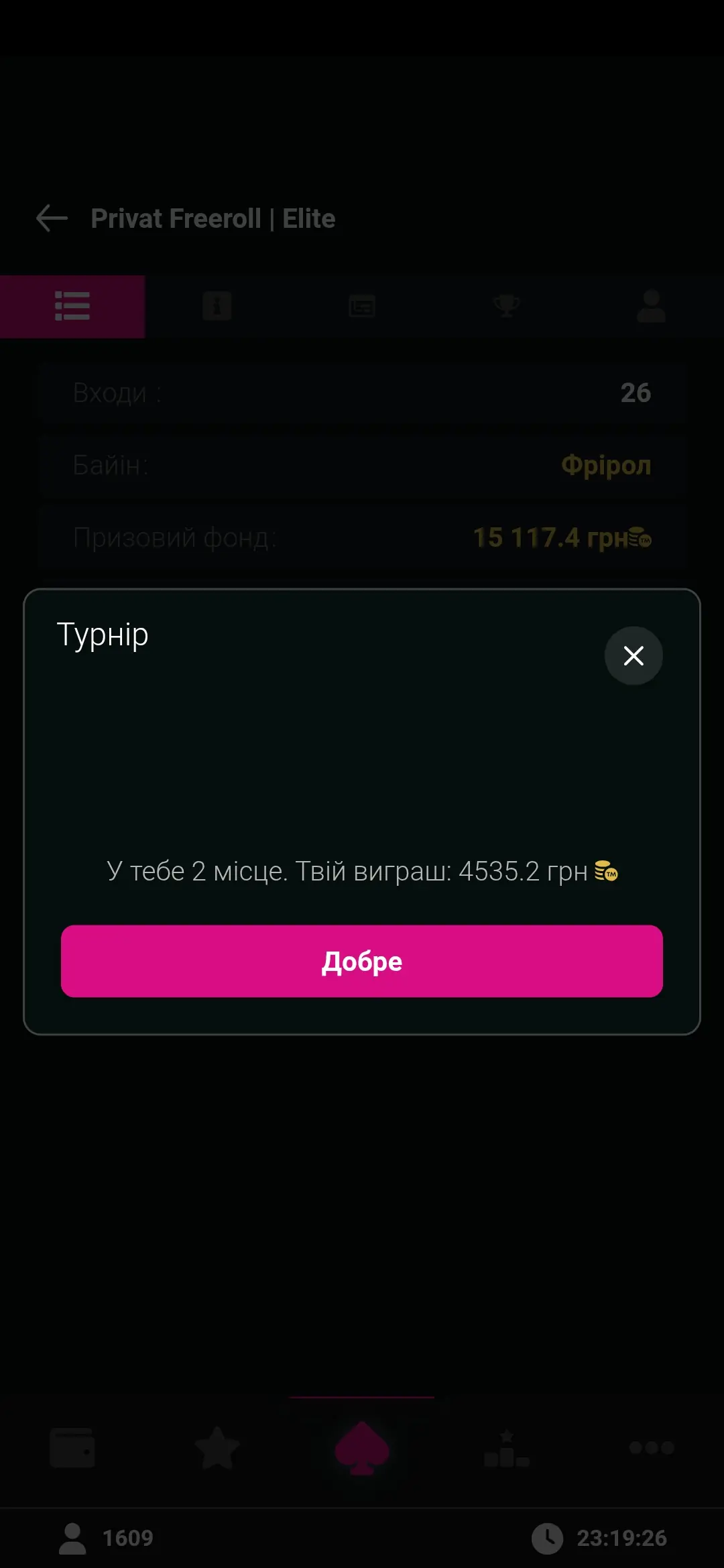 Далі скріни не робив. Протягом 18 хв гра була закінчена і я отримав своє почесне 2-ге місце.