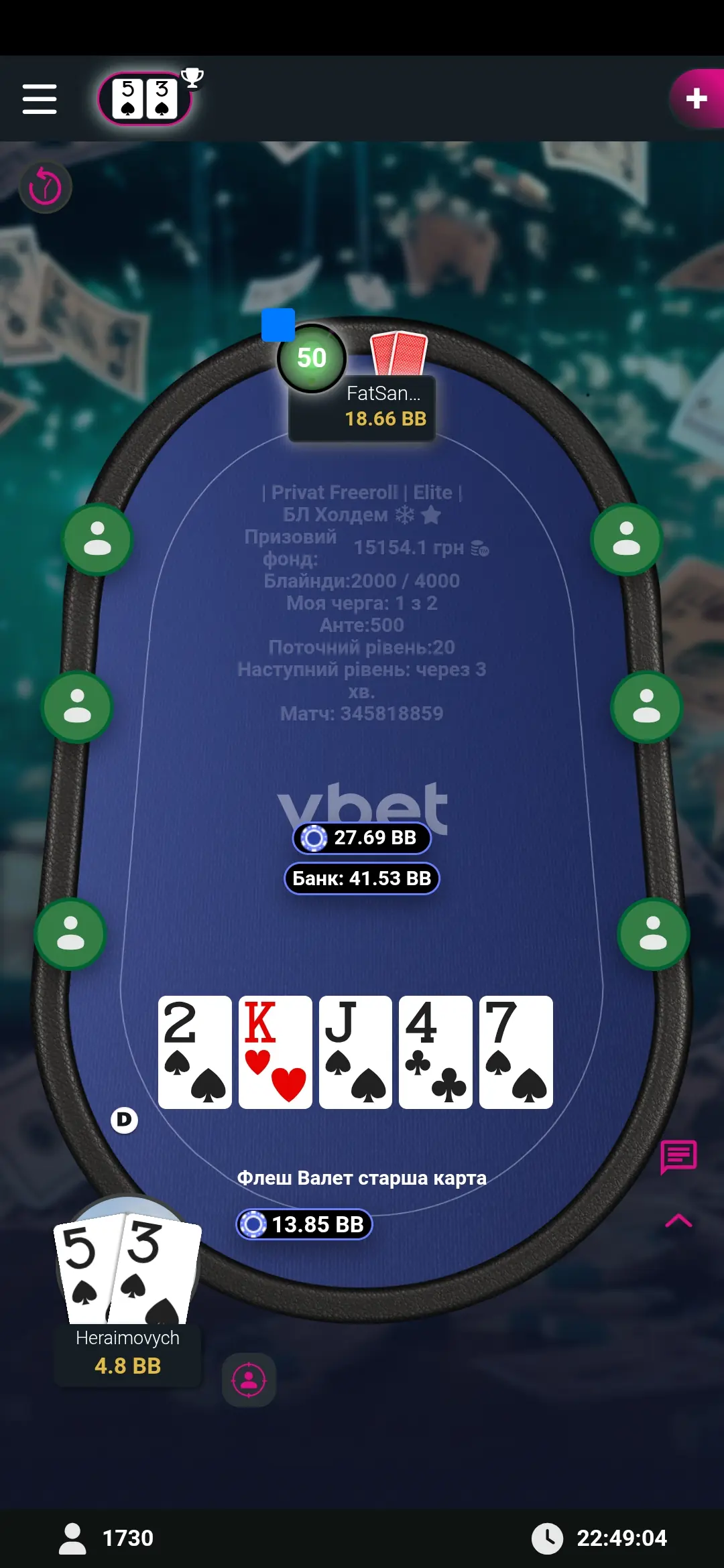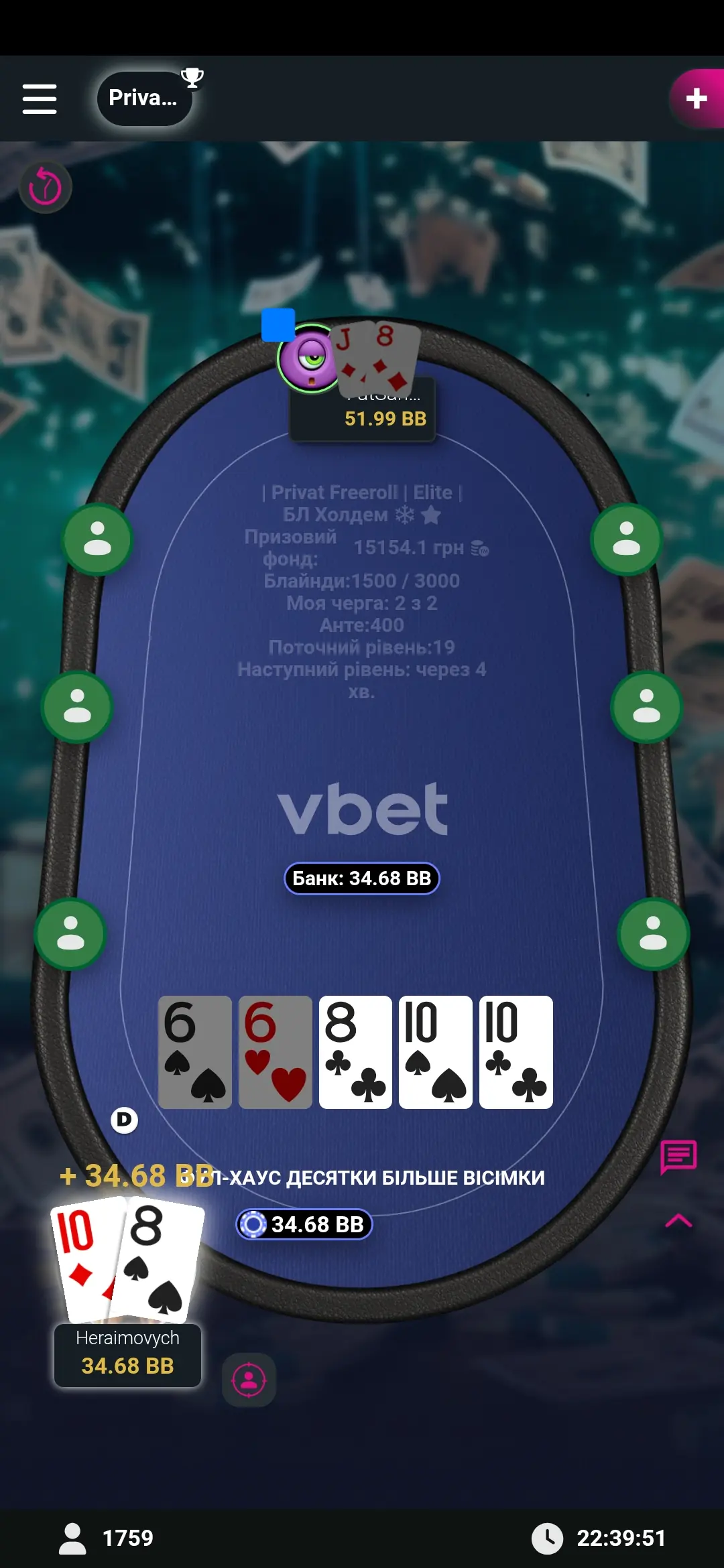 Мав вилітати при виставленні на флопі, але це Вбет захотів побалуватись і дати мені надію.