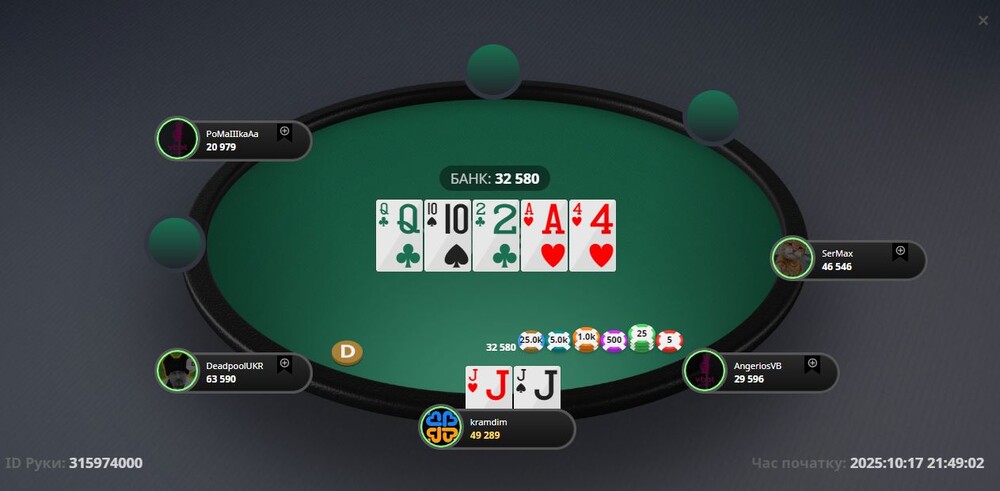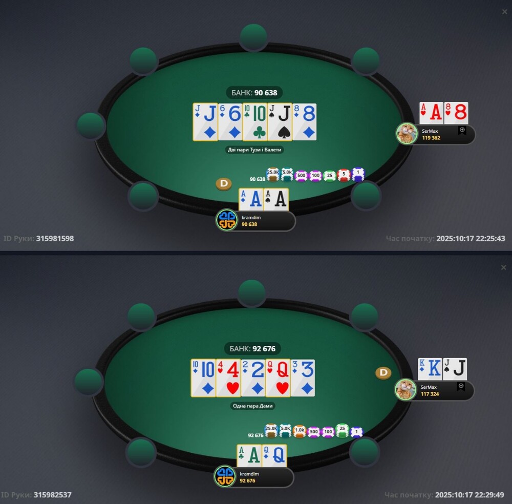 Цю міні розповідь хочу почати відразу з Топ-5. Запушив своїх КJ та отримав досить швидкий колл від Дмитра. Звісно в цій роздачі я повинен був вилітати та забирати почесне звання "бабл-бой", але на допомогу прийшов він К♥️...