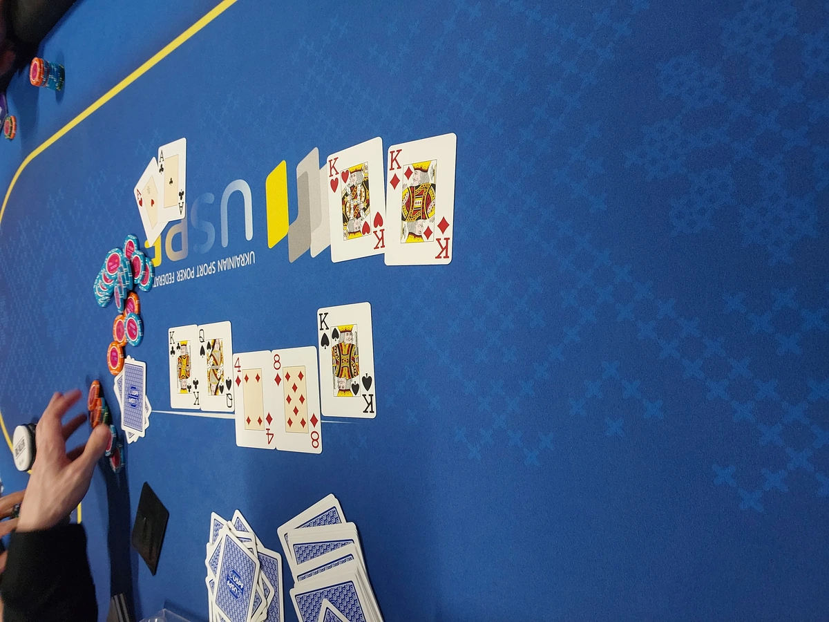 Грав сьогодні достойно показав не поганий рівень, за весь час зловив гарні два каре (дам та королів) за які опоненти проплатили і фішками і сльозами. Каре Дам нажаль не зафіксував. За всю гру вибив понад 10 гравців.