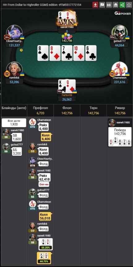 Дякую що розімієте, ніяк не можу набратися терпіння і дісциплінни, тому роблю постійно однакові помилки. Дуже багато разів брехав собі що більше не буду грати префлопами олл-ін. БРЕХАВ😅
