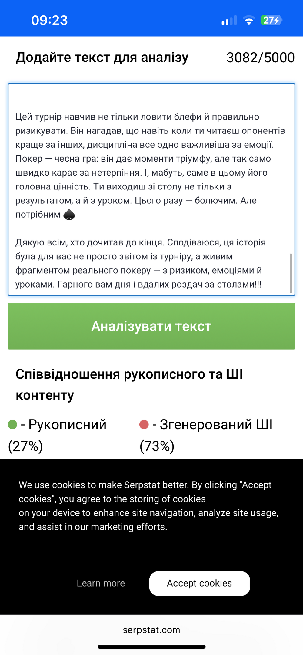 А я іноді відправляв ШІ для коригування тексту, вибачаюсь, більше так не робитиму. Хоча відсотків занадто багато🥲