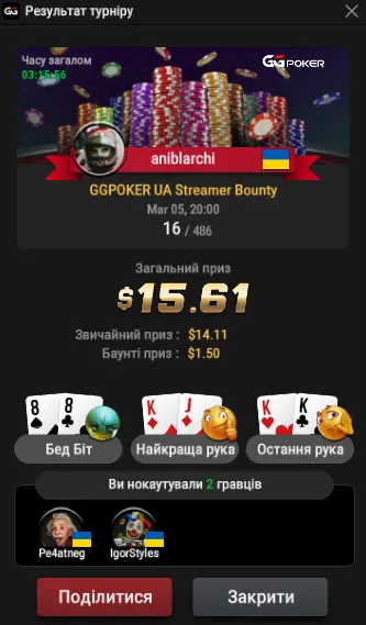 Дякую всім гравцям - за гру, а читачам - за увагу! Побачимось за покерними столами😉🤝