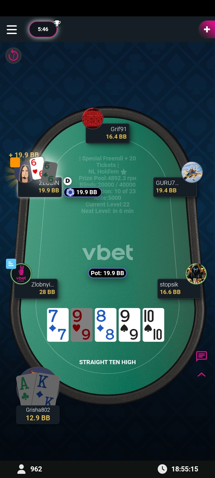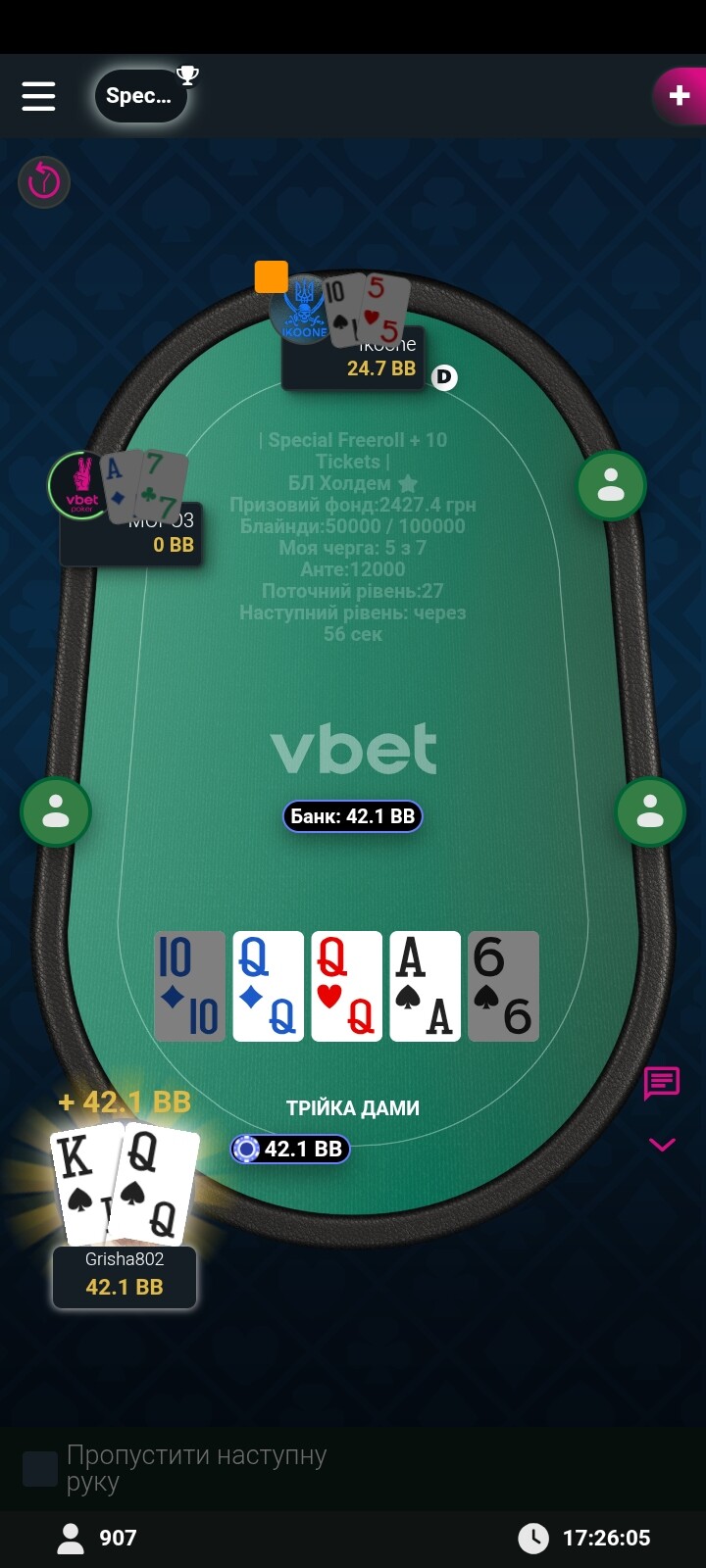 Так іноді буває в покері,у мене вже другий місяць гра не клеїться, зібралися і готуємося до інших турнірів, удачі 👌 🤝 👍 👋