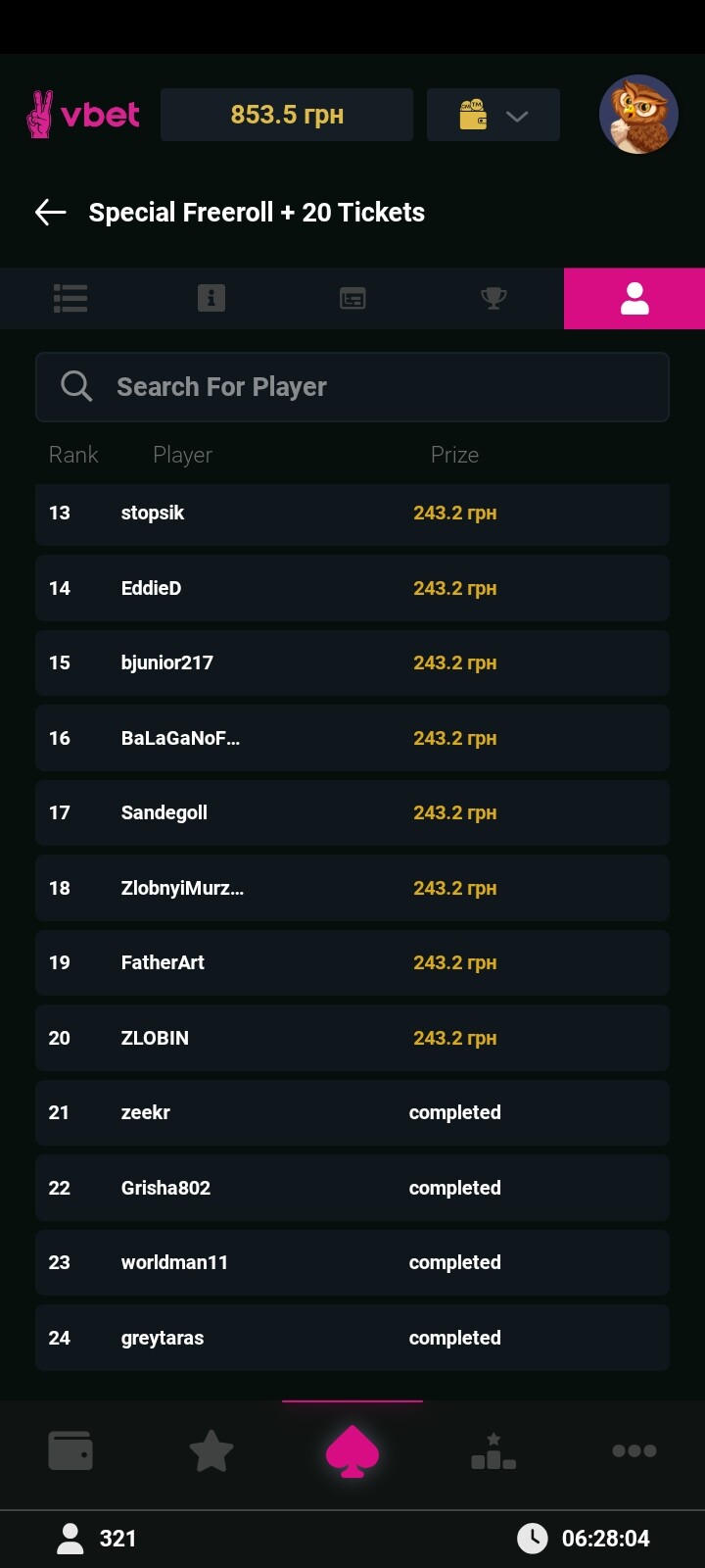 Через один день після такого прикрого випадку граю аналогічний турнір з відмінністю що в ньому лише 10 призів.