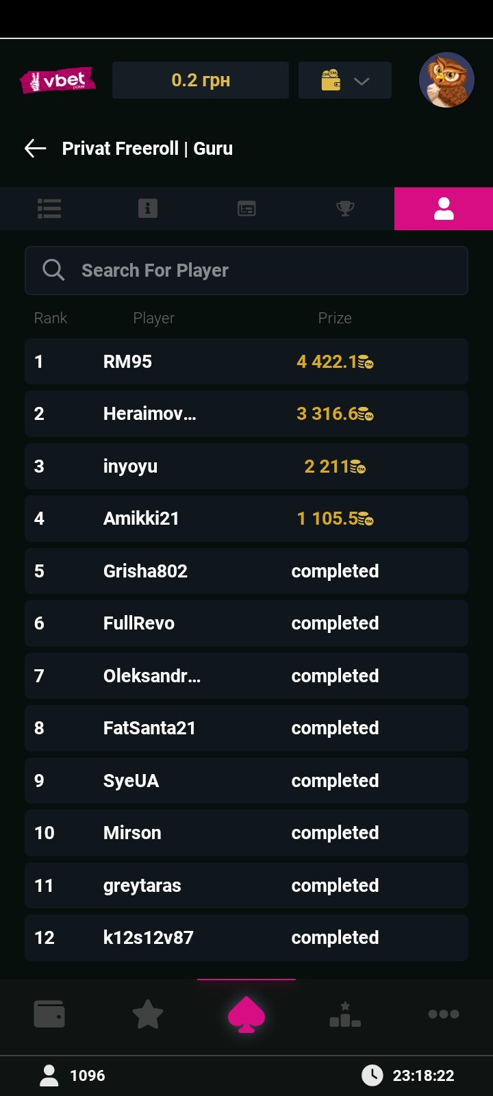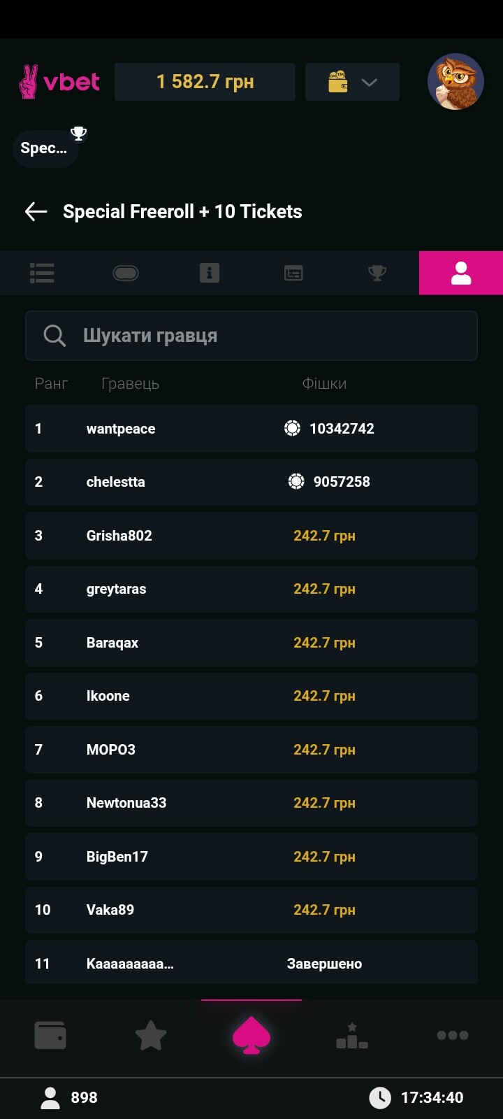 Такий результат.Бачимо гравців з Кардмейс,що просто приємно.Я знаю що значення немає яке саме місце посяде гравець з 1 по 10-виграш однаковий.