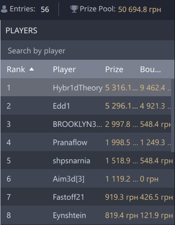 Ось такий вийшов турнір. Головне не втрачати здоровий глузд і думати головою) І навіть якщо все йде погано, спробувати щось змінити. Призові на скрині: