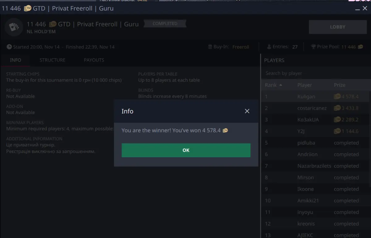 Першу перемогу у новому статусі гуру я отримав десь на 3й тиждень що не могло не порадувати: