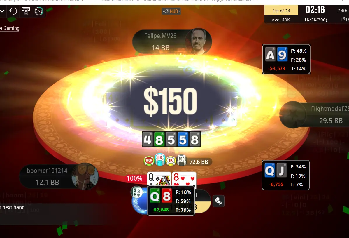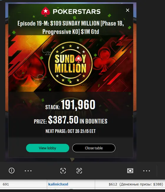 Ще був прохід у день 2 сандей милионс з коротким стеком(10bb) ,але на на другий день я не зьявився😂 таким чином пережив кілька пейджаппів і отримав 600$: